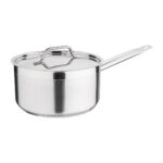 Made from a stainless steel body and aluminium base, the 3000ml saucepan from the Nisbets Essentials range is ideal for cooking large amounts of food such as sauces and soups. Features a handled-lid that helps to speed-up cooking times.