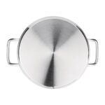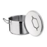 Don’t waste time and effort while cooking your delicious stews – using this 5.6Ltr stew pot from the Nisbets Essentials collection takes all the hassle out of it. It’s made from high-quality stainless steel and features an aluminium sandwich base suitable for use with induction hobs as well as all other cooking surfaces.The pot itself retains heat excellently and distributes it evenly – there are no hot spots, guaranteeing consistent cooking results every time. A wide 240mm diameter makes it easier to stir your ingredients as you cook or, if you prefer to cover and simmer, the pan also comes with its own matching lid. This lid is designed with steam holes to let excess moisture escape, and a sturdy central handle for easy lifting.