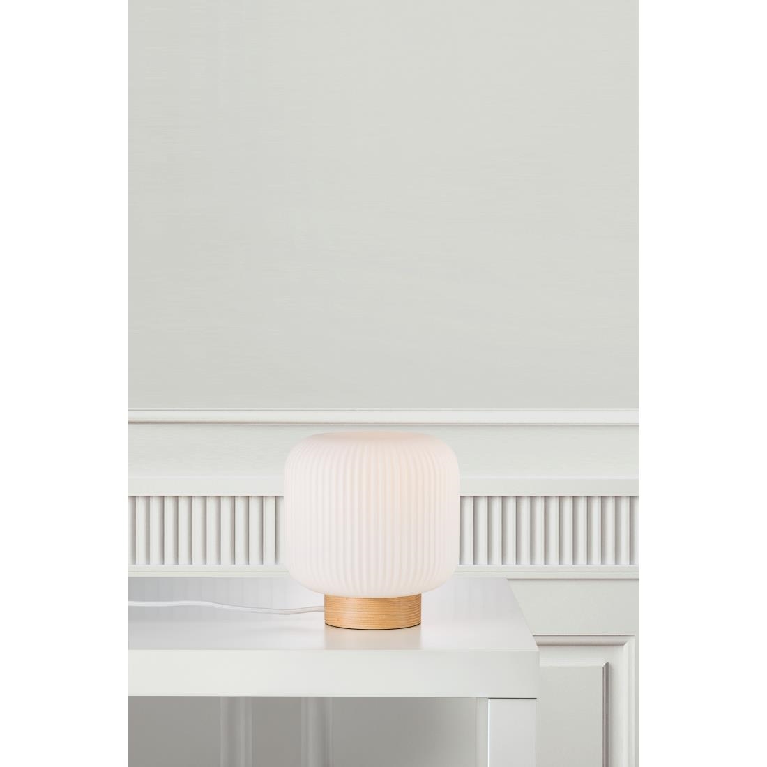 Nordlux’s Milford Table Lamp features a stylish Scandinavian design that suits a variety of interiors. Its opal white glass shade is mouth-blown and individually hand-crafted, resulting in subtle variations in thickness and occasional air bubbles that add a unique charm. The wooden base enhances the lamp’s natural aesthetic.