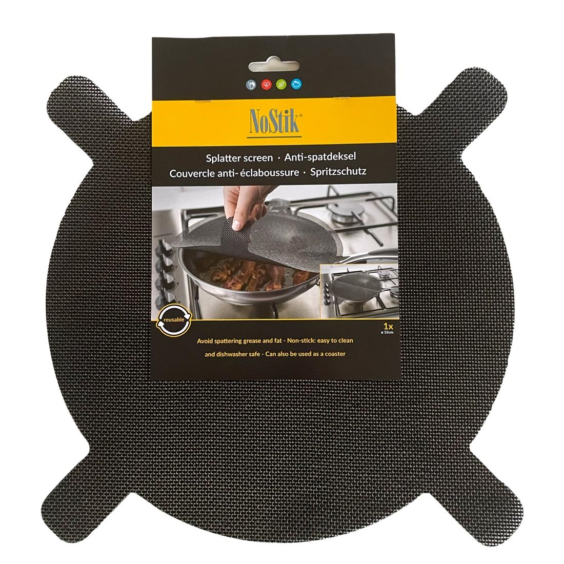 The 320mm diameter NoStik splatter guard/screen is no different. The perfect solution for keeping your hob tops clean, the splatter screen forms a barrier on top of the pan, reducing the amount of fat and grease exiting the pan during cooking. Not only does this reduce cleaning times after cooking – it also helps to reduce the chance of burns. Simply place the guard on top of the pan and you’re good to go. The guard is highly reusable and easy to clean.