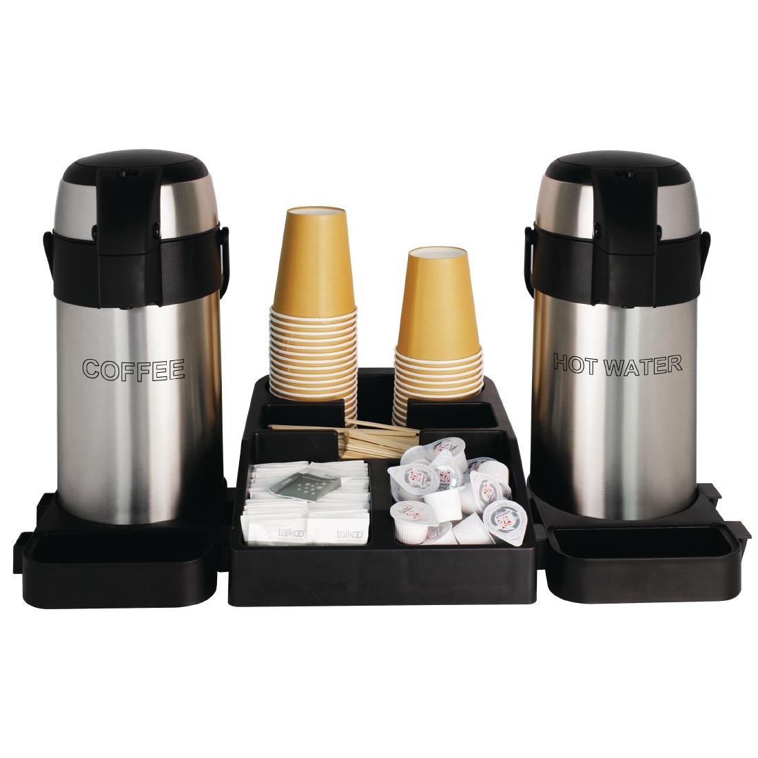 It’s easy to keep your hot drink stations clean and tidy using this airpot station which integrates perfectly with Olympia’s airpot drip trays, conveniently clipping together. Perfect for buffets, functions or corporate events, the airpot station has plenty of space for everything you’ll require when serving hot drinks. With room for disposable cups, stirrers, sugar sachets and disposable milk pots, keeping condiments tidy is simple.