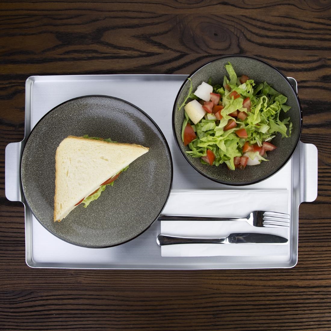 Perfect for room or buffet service in modern hotels, this 420(W) x 300(D)mm Olympia aluminium service tray offers elegance and functionality at an economic price. Made from aluminium and boasting a brushed finish, this tray is exceptionally sleek and attractive, adding a sophisticated touch to your food displays or room service. Made from high quality aluminium, the tray is both lightweight and durable, enabling easy carrying while also ensuring longevity. Raised sides also stop crockery and food from sliding off the tray, preventing spills during service. This tray is not dishwasher safe, and should be cleaned with mild soapy water.