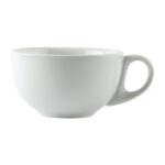 Tough, scratch and chip resistant – these 285ml cappuccino cups from Olympia Athena are ideal for any demanding catering setting. The fully vitrified finish makes them tough enough for heavy everyday use, while the rolled rim prevents chipping from those unpredictable knocks and drops that come with commercial catering.The classic, timeless shape gives your cappuccinos an authentic and stylish look that can help to really spruce-up your services.Thanks to the wide handles, each cup is easy and comfortable to grip. This helps to keep guests satisfied throughout their visit, whilst reducing the risk of drops and spills.