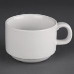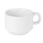 Need great-value crockery that’s made to last – even with daily use? Then these 7oz Olympia Athena stacking cups are perfect for you. The stacking cups’ super-vitrified porcelain construction gives them an extra-hard glaze for superb toughness and resistance to scratching and wear. This vitrified construction also stops liquids from seeping into the cups – so they can be used day-after-day without risk of staining or tarnishing! Rolled edges give the cups great chip-resistance too, allowing them to handle knocks and blows without damaging. Once service is over, these 7oz cups can be safely used in a dishwasher, thanks to their super-vitrified construction. So keeping them clean and hygienic is always made quick and easy.And thanks to the stackable design, these cups can be neatly and safely nested together for space-saving storage.