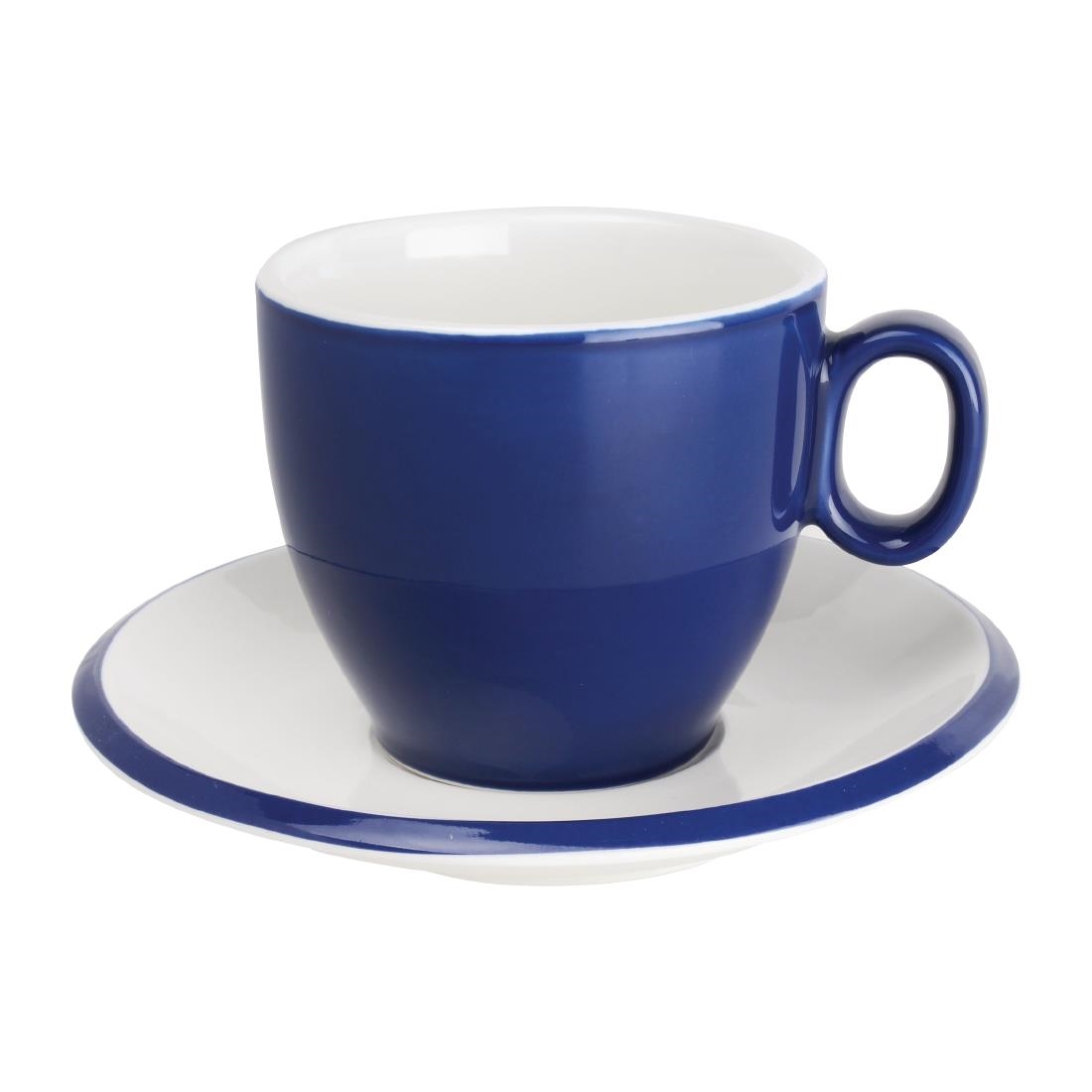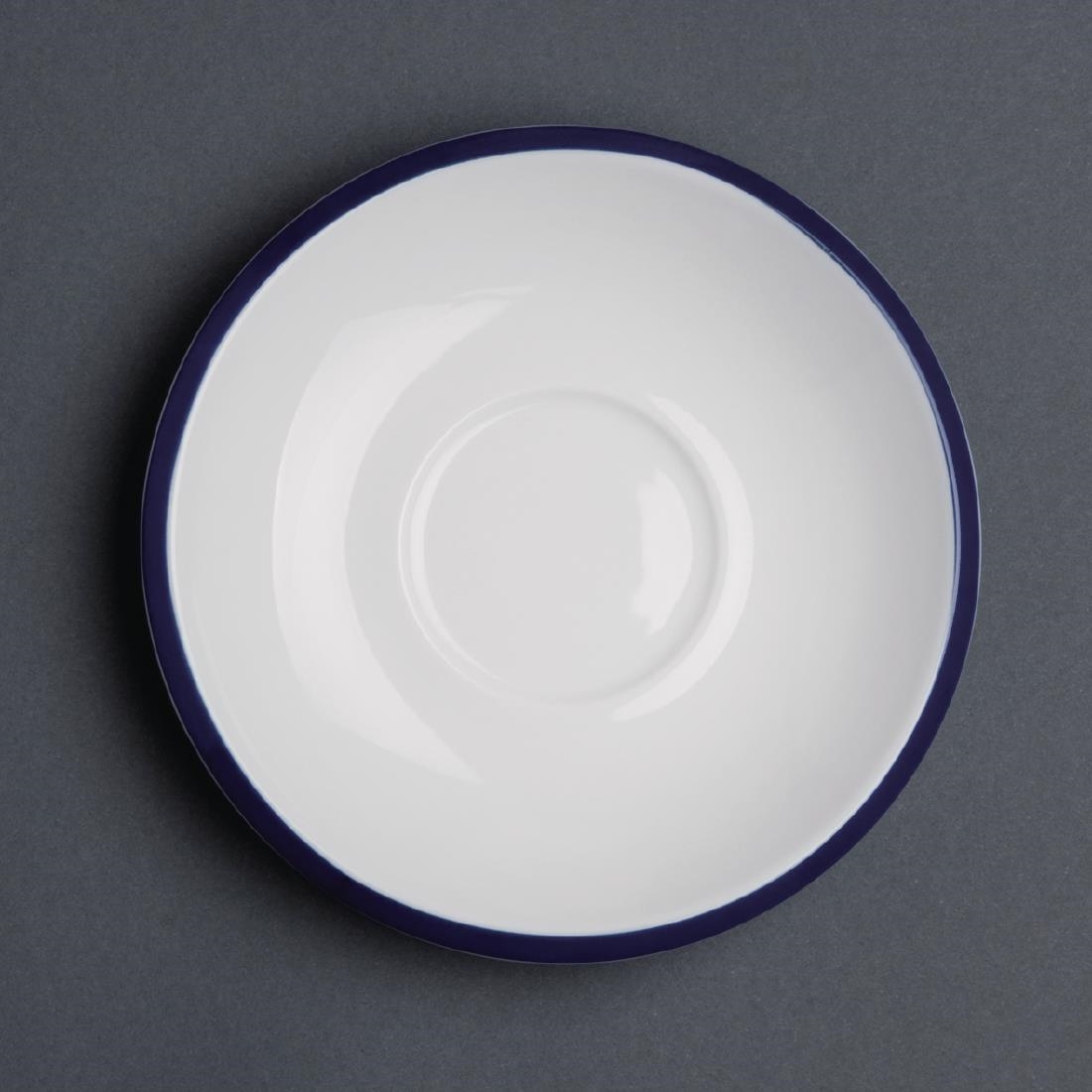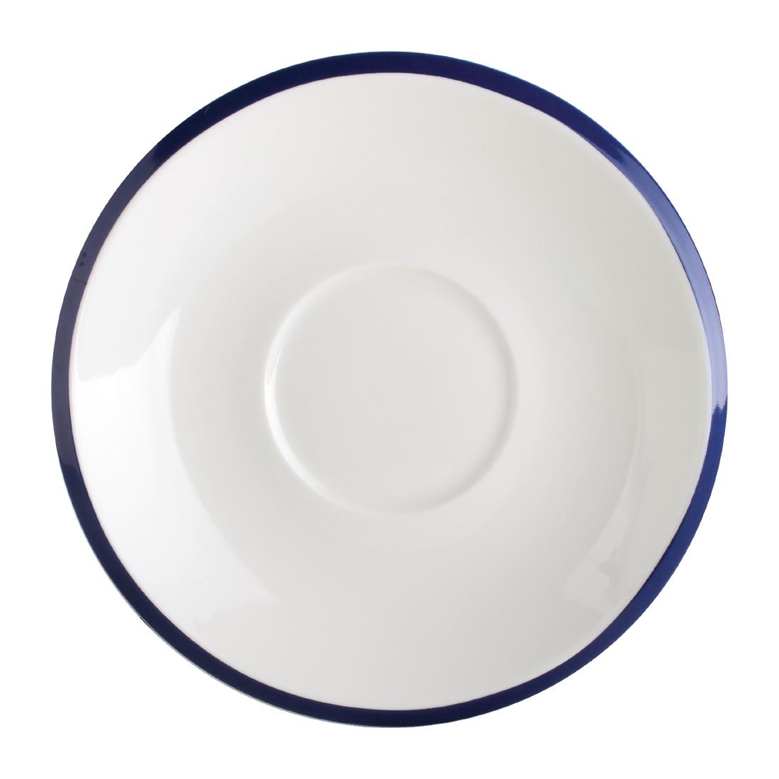 150(Ø)mm / 6″. White saucer with blue rim. For cup SA275.