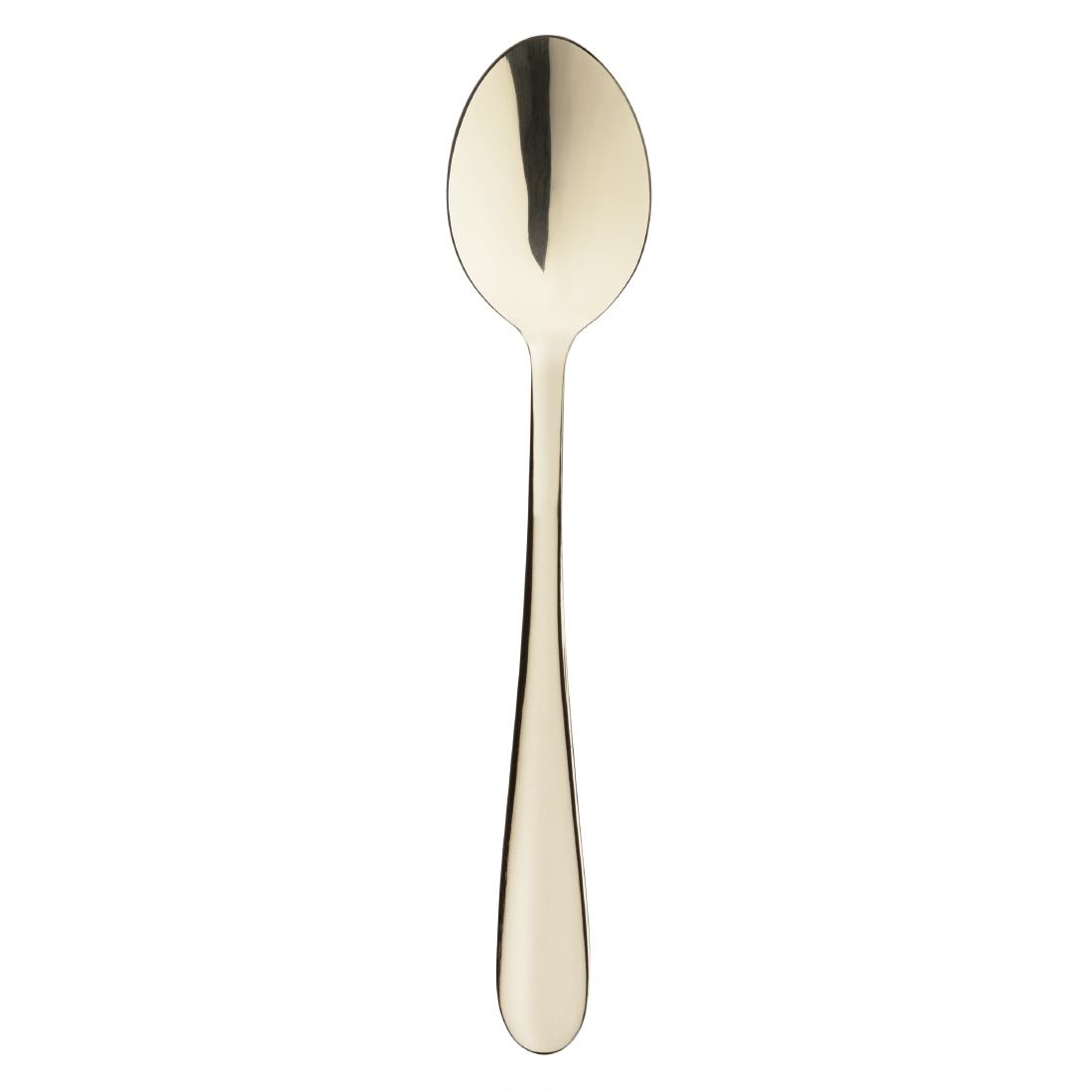 Add a touch of style to your table settings with these champagne gold-coloured teaspoons from Olympia’s Buckingham collection. They’re great for all kinds of dishes during dinner service and a simple way to lift the look of your setup. Made from tough 13/0 stainless steel, each spoon features a teardrop-shaped handle that feels comfortable to hold. The polished finish gives them a bit of shine, helping them stand out on the table. They’re easy to clean too, so it’s quicker to get fresh cutlery back out during busy services.