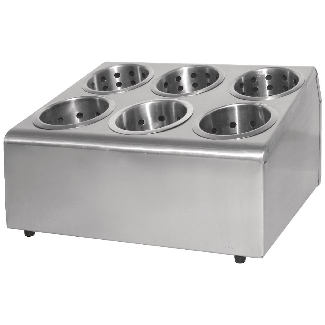Ideal for use front of house for establishments that allow customers to collect their own cutlery, the sturdy, stainless steel construction of these baskets offers a tidy, hygienic way to store cutlery. The six baskets are perfect for individual pieces of cutlery or cutlery wraps you have pre-made. Not limited to cutlery, you could also use this handy station for straws or other condiments.