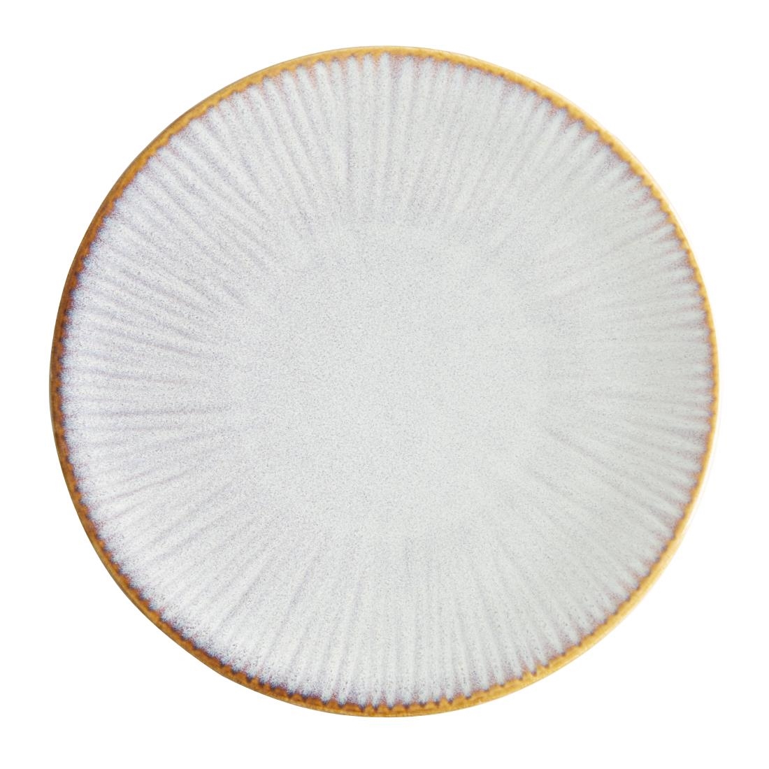 These Drift embossed coupe plates feature a sleek pale grey reactive glaze and a contrasting rim that not only adds a touch of style but also shapes the plate perfectly. Crafted from porcelain, the plates are covered by a lifetime edge-chip warranty for added strength and durability.
