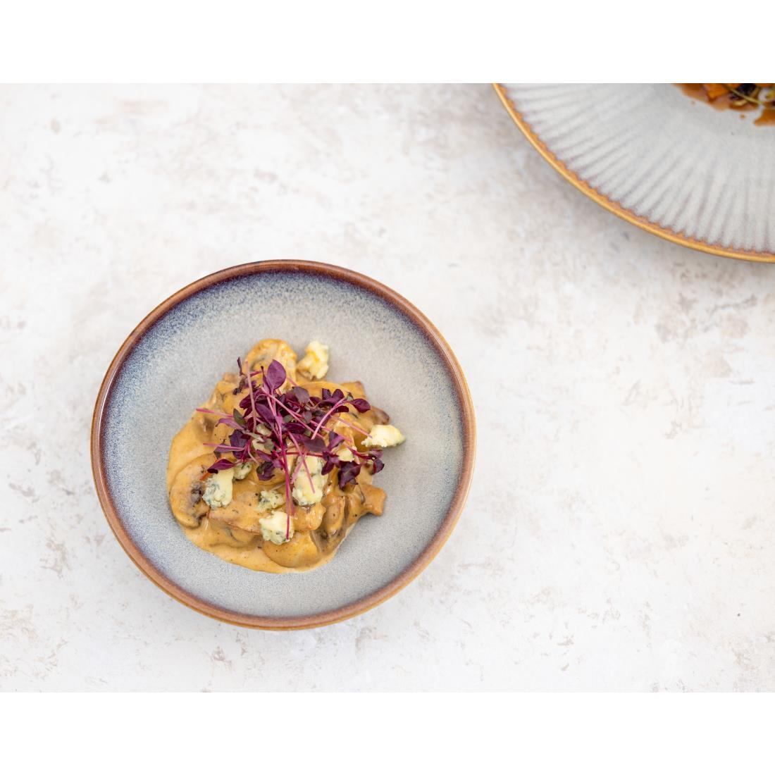 - Each piece is complete with a contrast rim, designed to shape the dish