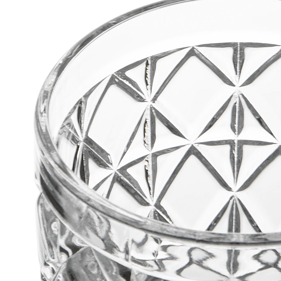 Add a splash of elegance to your cocktail service with these short drink tumblers from Olympia’s Havana collection. Featuring a playful, retro design, the 300ml tumblers boast a sophisticated cut-glass pattern that catches the light beautifully. Crafted from durable soda lime glass, they have rolled edges to prevent chipping and are dishwasher safe for easy cleaning.