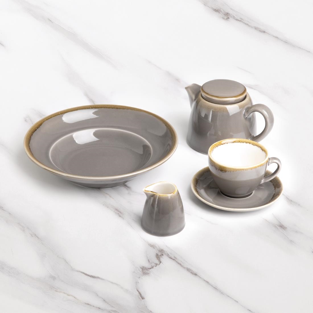 Show off the colour and presentation of your food, with these Olympia Kiln pasta bowls in smoke effect.Dark grey pasta bowls make a magnificent contrast to the vibrant colour of your fresh dishes, showing off colour and presentation. Stand out from your competitors with beautifully presented, darker crockery: retaining classic pasta bowl shape and quality with modern design. The contrasting edges are hand finished by artisans and covered with a reactive glaze that both protects the bowls and catches the light for presentation. The material of the bowls is hard-wearing porcelain. Porcelain is a favourite crockery material due its low maintenance nature and fantastic resilience. Keep pace during busy services with anti-chip pasta bowls that last. Get stylish and durable piece of crockery now, with these pasta bowls from specialist brand Olympia.