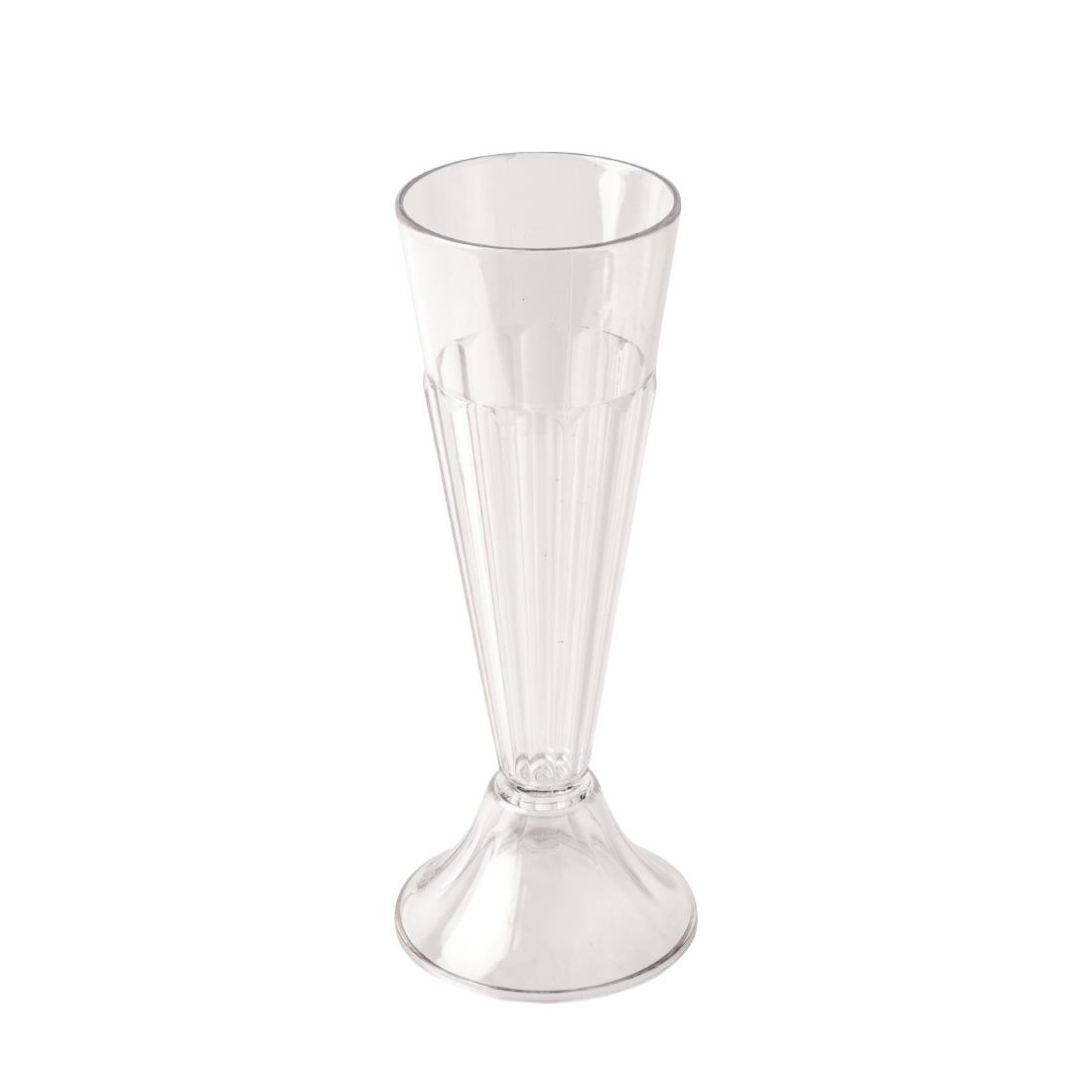 Traditional ice cream goblet made for the classic ice cream indulgence from Knickerbocker Glory. With the trends of over indulgence, it’s the perfect way to capitalise on feel-good summer desserts. Made from tough, clear polycarbonate, making it superb for outdoor catering. The glass is long and transparent, enhancing the presentation to entice hungry onlookers. Glasswasher safe for easy cleaning.