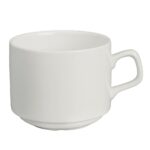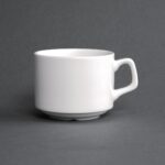 Stackable, stylish and strong, these modern-look cups by Olympia Lumina are perfect for any catering environment in search of looks with strength to match. Fully vitrified for unbeatable strength and shine, they’re ideal for heavy everyday use in hotels, gastro pubs, restaurants, cafes and more. The fresh white colourway and simple, stylish design brings a fresh feel to any table top, adding a touch of class to your drinks service. Matching saucer available.