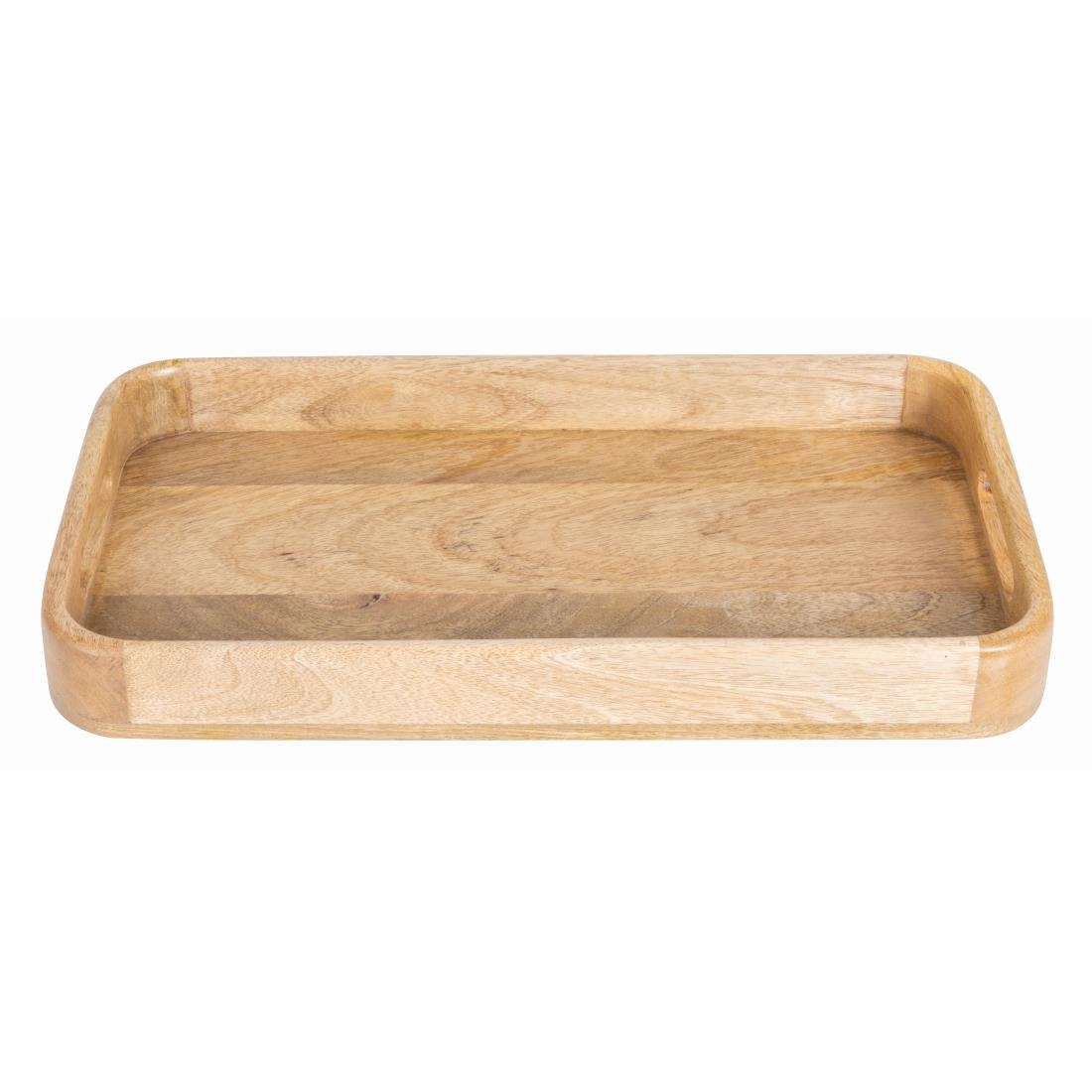 Serve with style using this rectangular mango wood serving tray from Olympia. The natural grain and warm tones of mango wood add a charming, rustic touch that highlights vibrant ingredients and dishes. Designed with high sides and built-in carry handles carved right into the wood, this 430x230mm rectangular tray makes carrying and serving easy and secure. Its strong, durable construction means it’s perfect for everything from buffet displays and room service to casual serving at the table.
