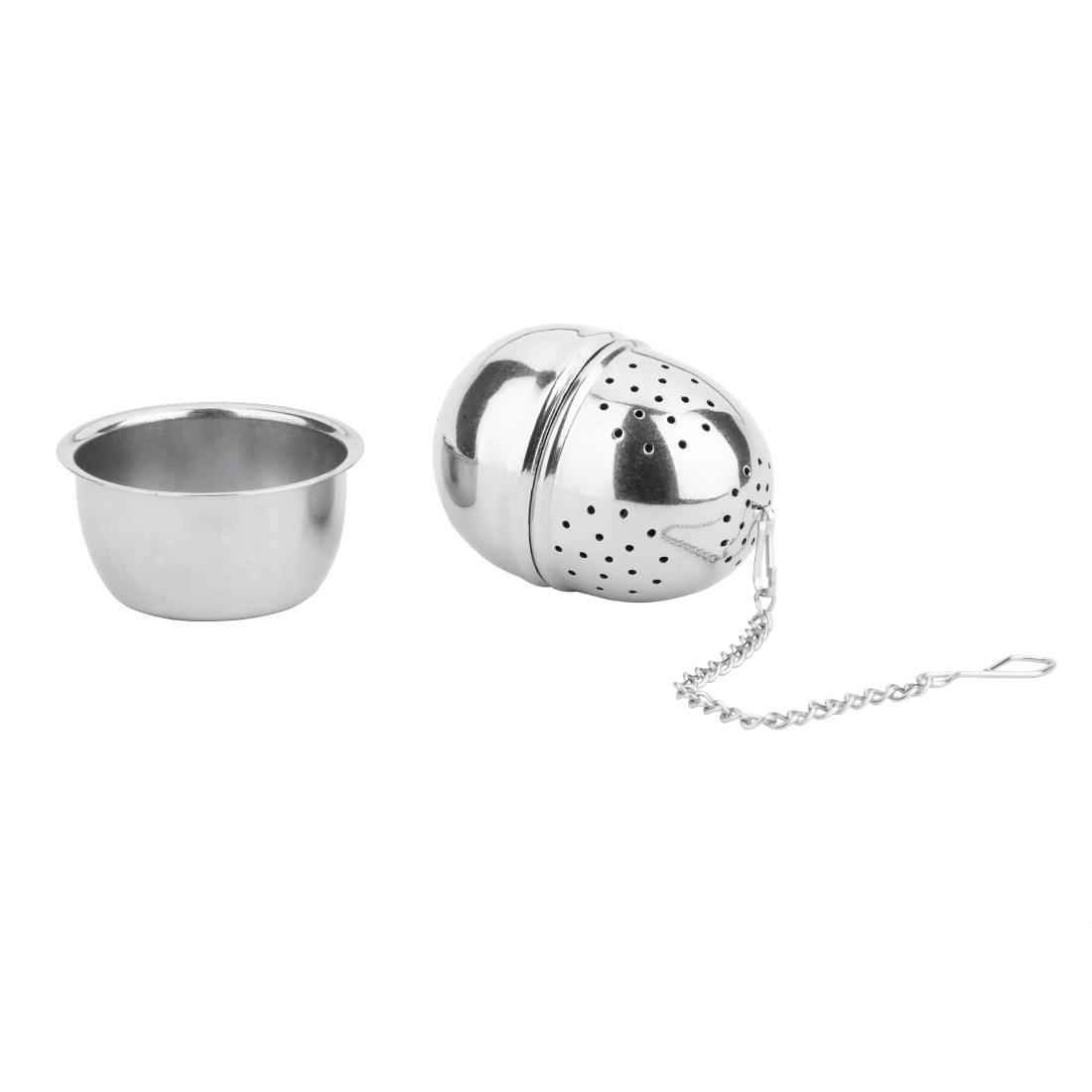Want to make your hot drinks services more sophisticated? Then the oval tea strainer from Olympia has exactly what you need. The strainer features multiple, small holes that allow tea leaves to properly infuse with boiling water – giving your guests’ tea a rich and aromatic taste!Made from stainless steel, the strainer is not only highly durable, but also boasts a stylish and eye-catching look. This ensures long-lasting use whilst being a stylish addition to your hot drinks’ services.And with a chain and hook, the strainer is practical too – allowing you to keep the strainer level and secure in your tea cup or pot!