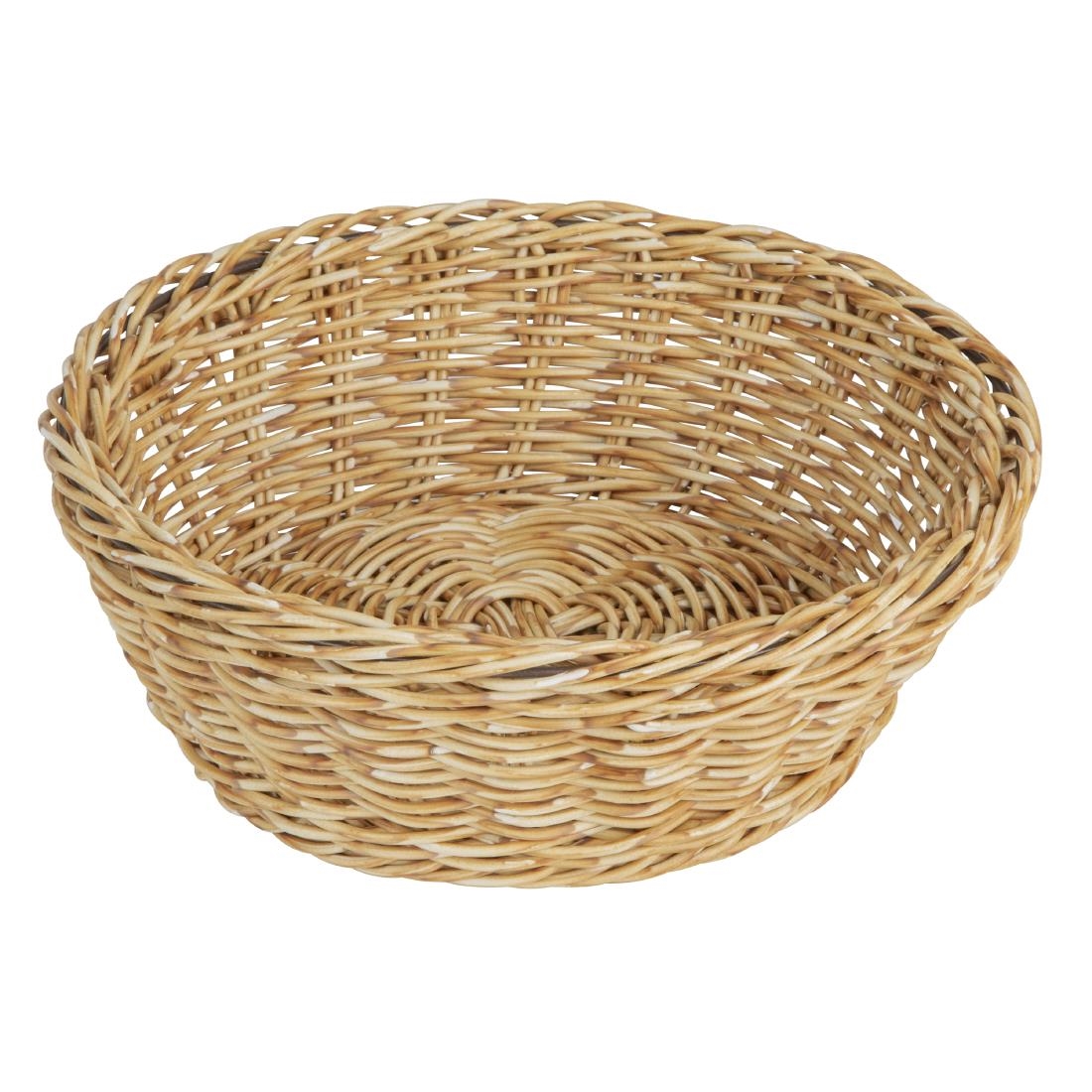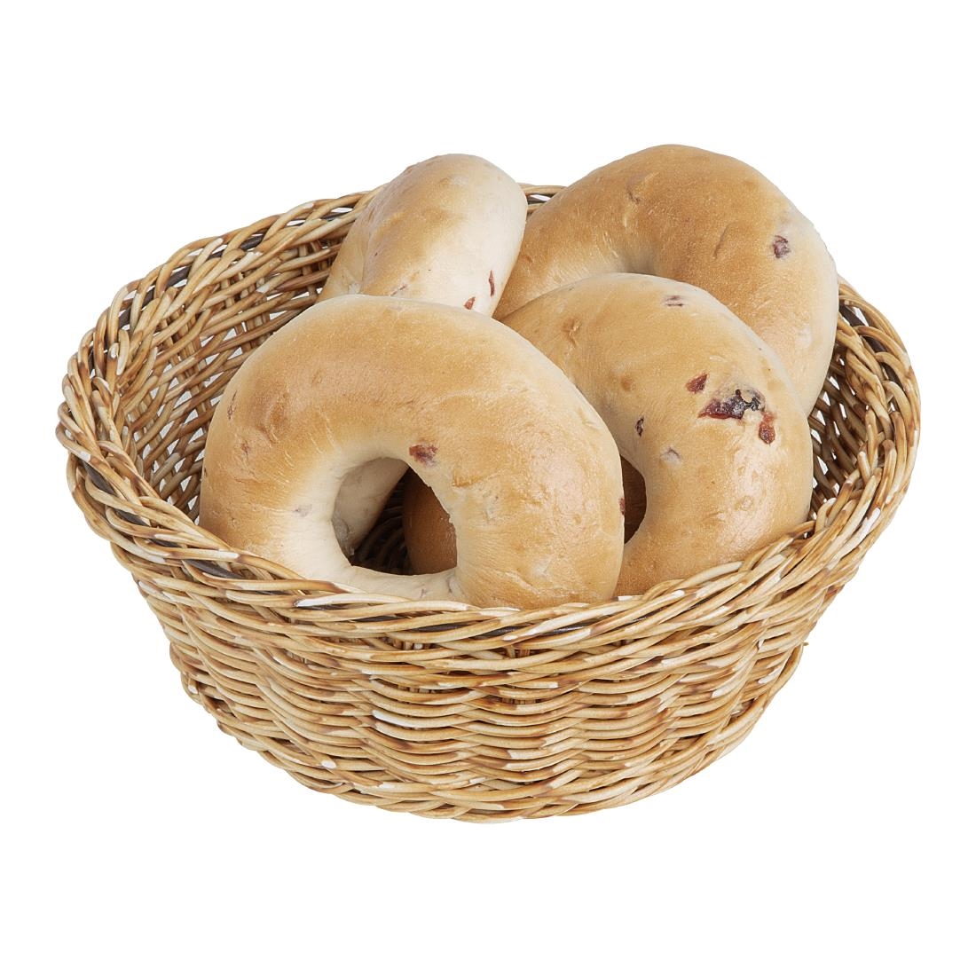 Introducing the Olympia round serving basket, crafted from durable polywicker in a light brown finish. Measuring 220mm in diameter, it’s ideal for displaying breads, pastries and other baked goods at breakfast buffets or during lunch and dinner service. The rustic, farmhouse-style design enhances the visual appeal of your food presentation, helping draw attention to what’s on offer. Once service is finished, simply place the basket in the dishwasher for easy cleaning.