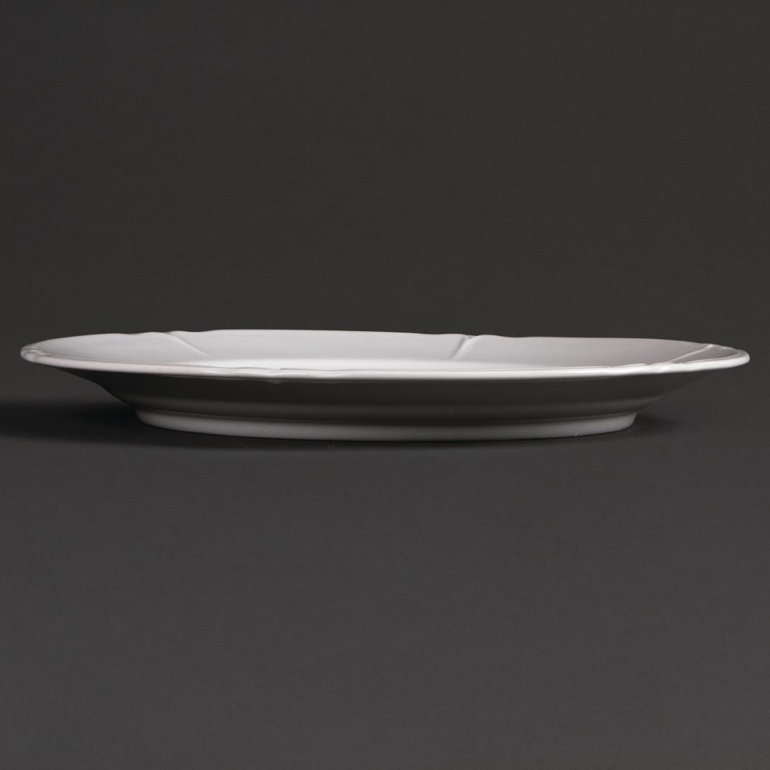 This delicate Rosa range by Olympia is subtly and delicately embossed in a traditional style, ideal to use every day in hotels, guest houses and tea rooms. These plates are fully vitrified to ensure the long life of the glaze and have rolled edges to help prevent any chips.Need advice on choosing the right size? See the size guide below for more information.