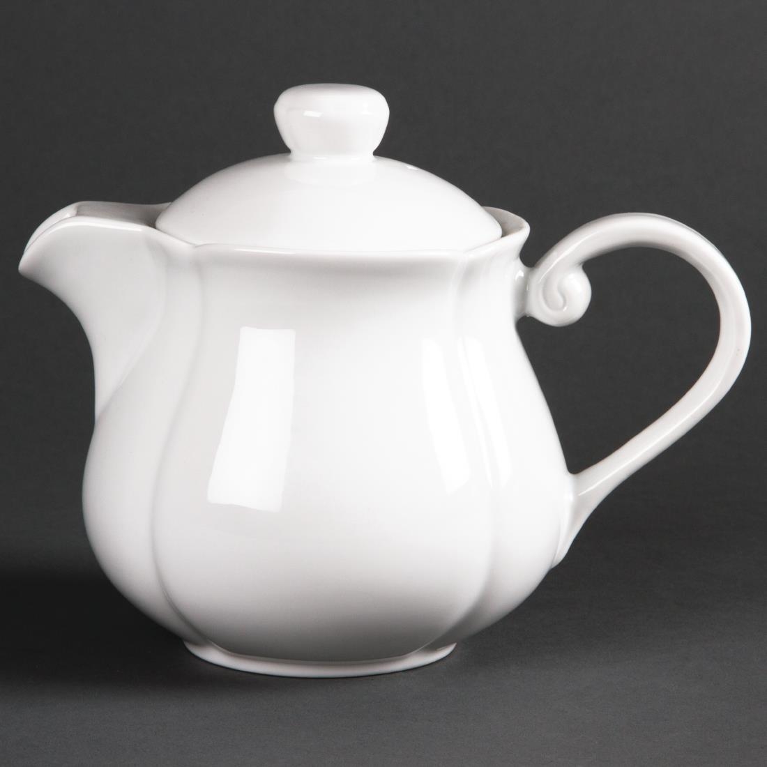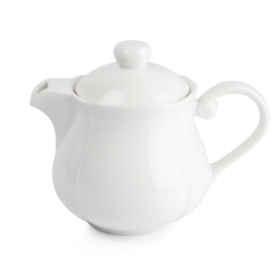The compact spouts of these squat, rounded 696ml teapots are designed to minimise breakages whilst still giving a reassuringly even pour. The large handle is easy to hold and control your pour, whilst the large scrolled handle makes it easy to grasp. The slim ring of the base prevents heat transfer with the table and guarantees that the tea or coffee maintains its temperature. These Olympia Rosa 696ml teapots are dishwasher, oven and microwave safe.