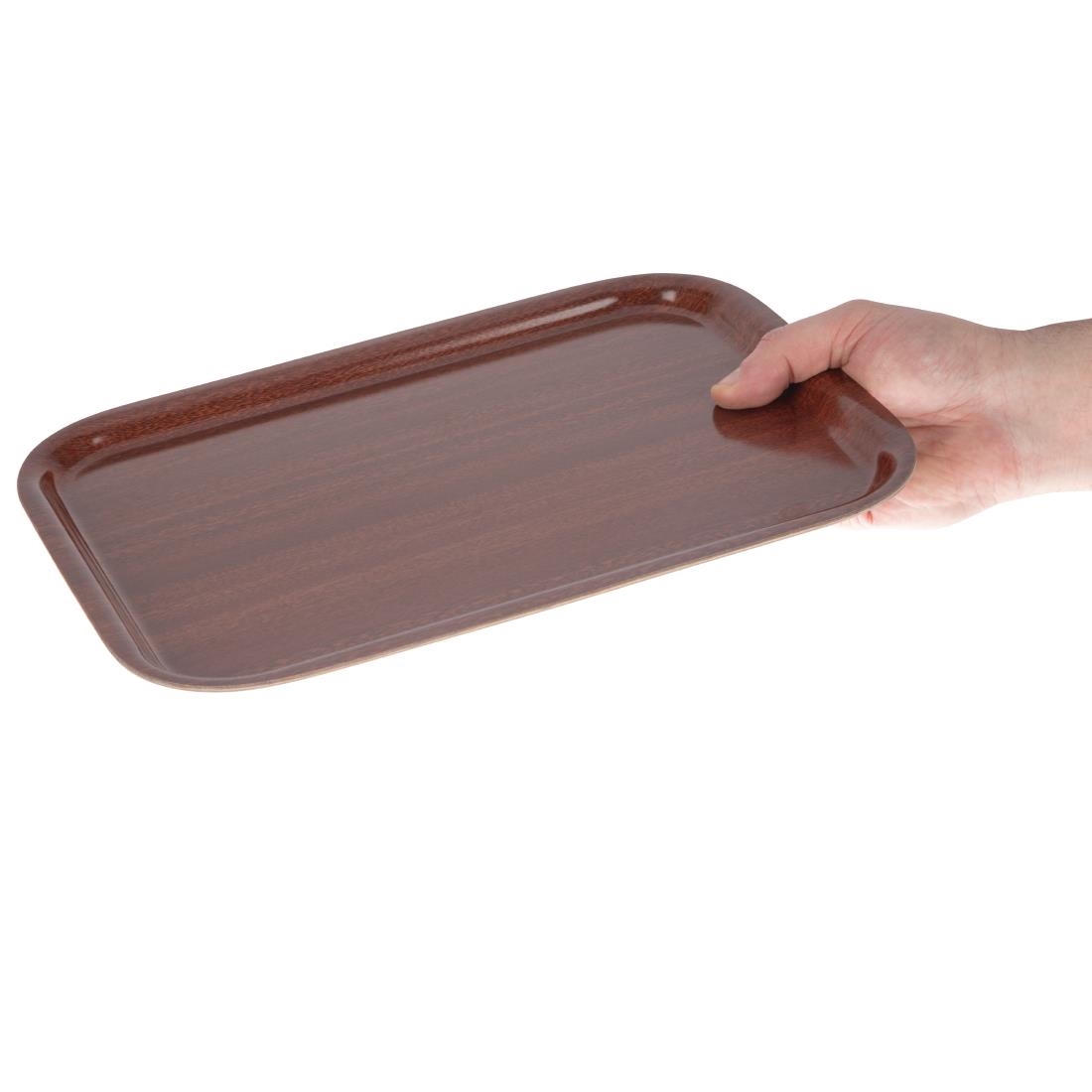 Offering tremendous durability, style and functionality, this 240(W) x 320(D)mm Olympia snack-size mahogany veneer canteen tray is perfect for any cafeteria, café or school. Made from mahogany veneer, this tray boasts outstanding strength and sturdiness, preventing it from breaking or losing its quality when faced with rigorous use. The rich mahogany veneer build also oozes warmth, giving your dining environments a more welcoming and inviting look that will instantly win over guests. A smooth surface also enables effortless cleaning, helping you keep this tray hygienic and in impeccable condition at all times.