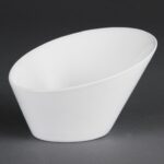 Our great value pure white porcelain oval shaped sloping 8x 7 1/4″ bowls by Olympia are fully vitrified for heat and shock resistance, the ideal crockery for hotels which want simplicity.
