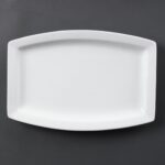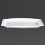 Great value hardwearing pure white porcelain rectangular 12 ¾” plates by Olympia, with the added advantage of stackability and strengthened rolled edges for chip resistance.Need advice on choosing the right size? See the size guide below for more information.