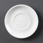Our great value pure white porcelain espresso saucers for stacking cups by Olympia are fully vitrified for heat and shock resistance, the ideal crockery for hotels which want simplicity. This item is guaranteed by the Nisbets Edge Chip Warranty.