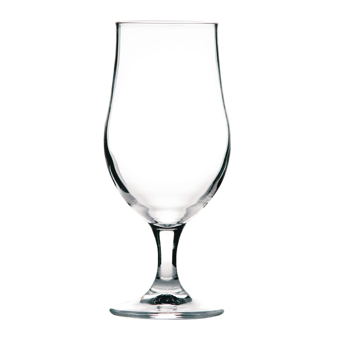 Featuring a tulip-shaped design, not only do these Onis Munique beer glasses provide elegant drink presentation, but the shape helps to maintain head retention. Designed to minimise rim to rim contact and damage, this durable glassware is perfect for commercial use. These glasses are perfect for cask ales, craft beers or ciders, along with pulled or bottled beers.