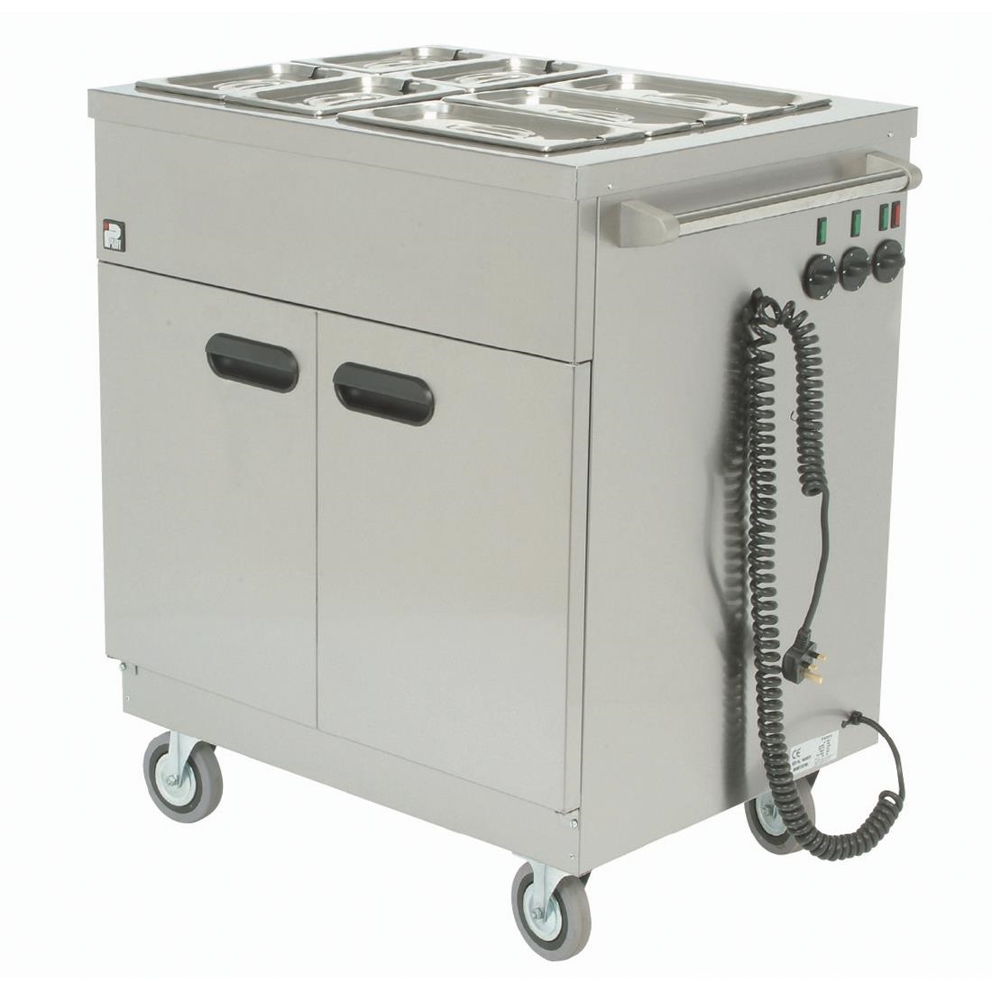 Ideal for care homes, functions and hospital settings, the Parry 1887 electric mobile server unit is a versatile and portable buffet trolley, ideal for safely storing and transporting hot plated meals. With the added functionality of the bain marie top, the Parry 1887 can also store gravy, baked beans, curry, chilli and other toppings, keeping them at a gentle, ready-to-serve temperature. The bain marie and main cavity are independently controlled to add efficiency and functionality, whilst the stainless steel construction and robust castors ensure the mobile serving trolley is easy to move and clean.