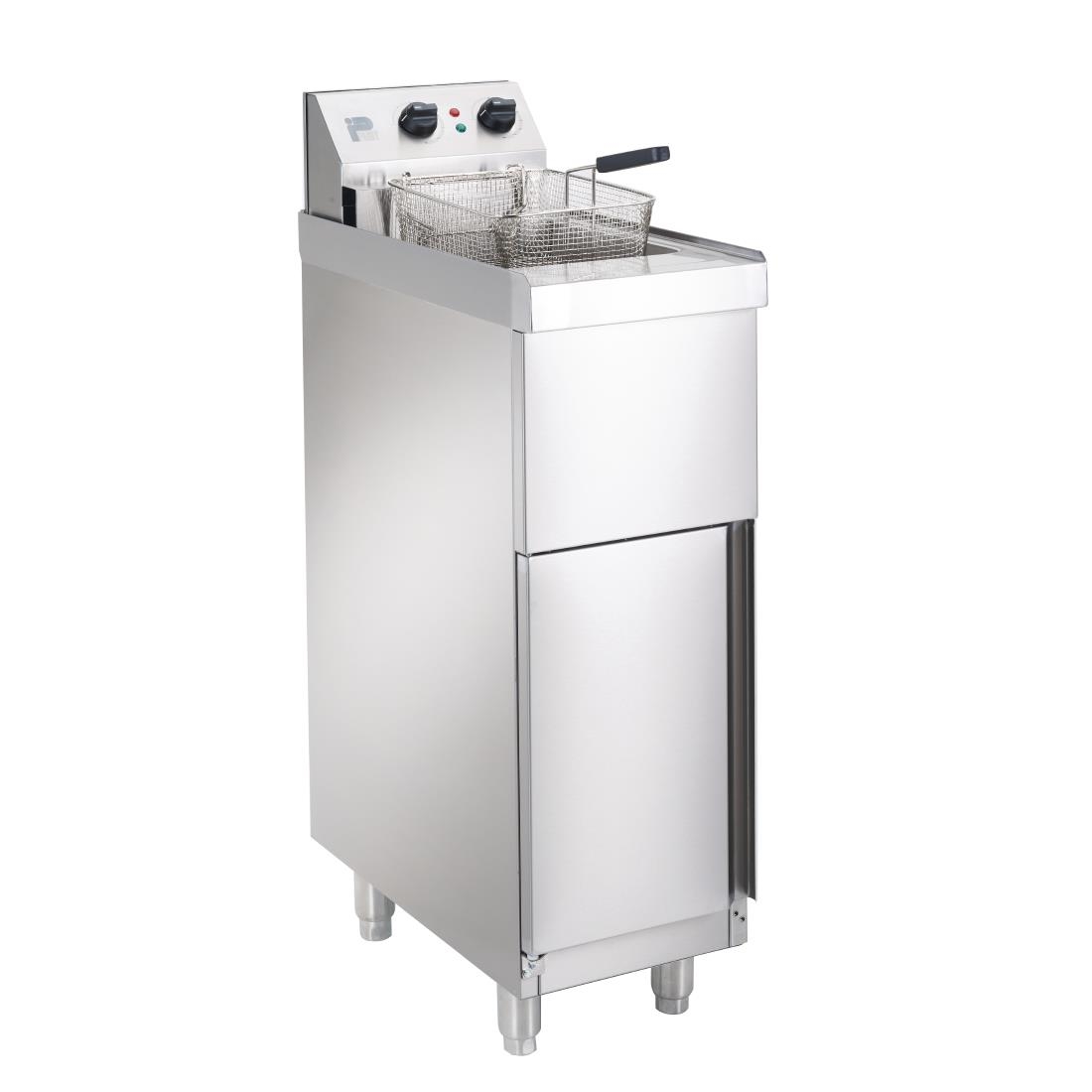 The Parry single electric pedestal fryer is a powerful freestanding commercial fryer ideal for use in takeaways and restaurants, as well as any business that requires a professional, reliable deep fryer. Featuring easy to use controls and a sturdy frying basket, the Parry fryer is perfect for cooking chicken, chips and fish and is designed to handle the rigours of constant commercial use. Constructed from durable stainless steel and with a hinged front panel to allow access to the drain tap, the Parry freestanding fryer is easy to drain and clean.