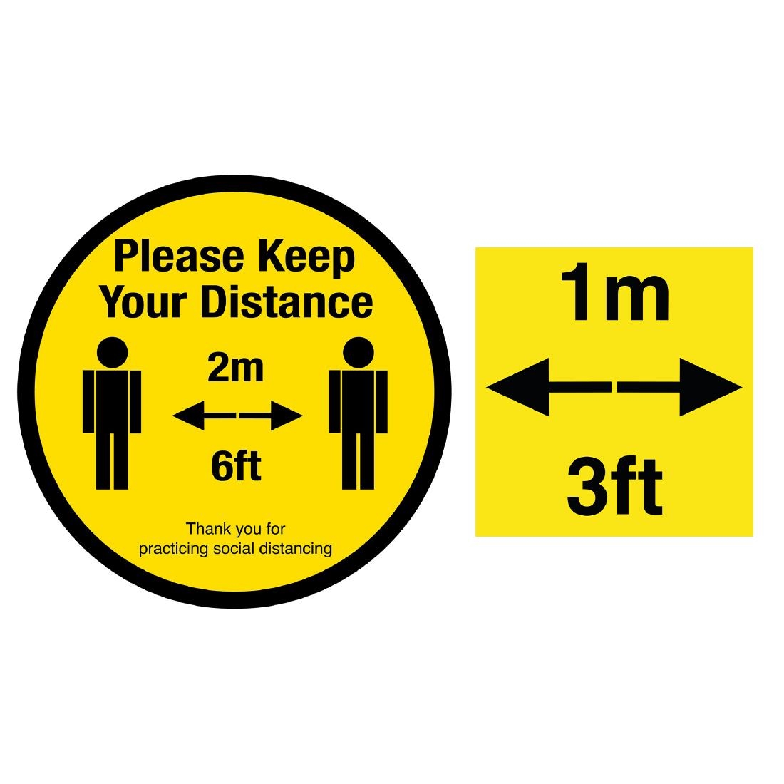 Includes a “1m | 3ft” patch that can be stuck onto the larger graphic to enforce one-metre social distancing
