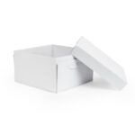 Serve and transport your cakes, muffins or scones with ease, with this cardboard cake box from PME. Made from durable cardboard, this cake box is able to store and transport your baked goods securely. This sturdy construction helps to reduce the risk of cakes being ruined by knocks or bumps, whilst preventing accidental dropping.Suitable for cakes up to 10″ or for multiple cupcakes or muffins, the box is supplied in a clear shrink-wrap film creating a hygienic barrier against contaminants.Supplied flat packed, these cake boxes take up next to no storage space – making them ideal for small bakeries where cupboard space is limited.