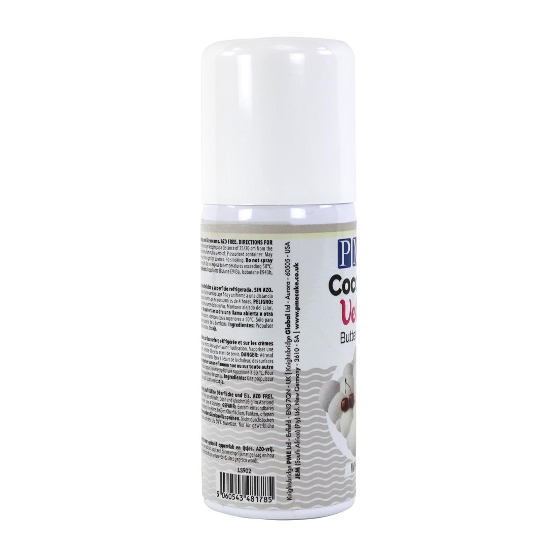PME’s cocoa velvet spray is made with real cocoa butter, so it will not alter the taste of your cake or dessert. For best results, apply the spray when the dessert is slightly chilled.