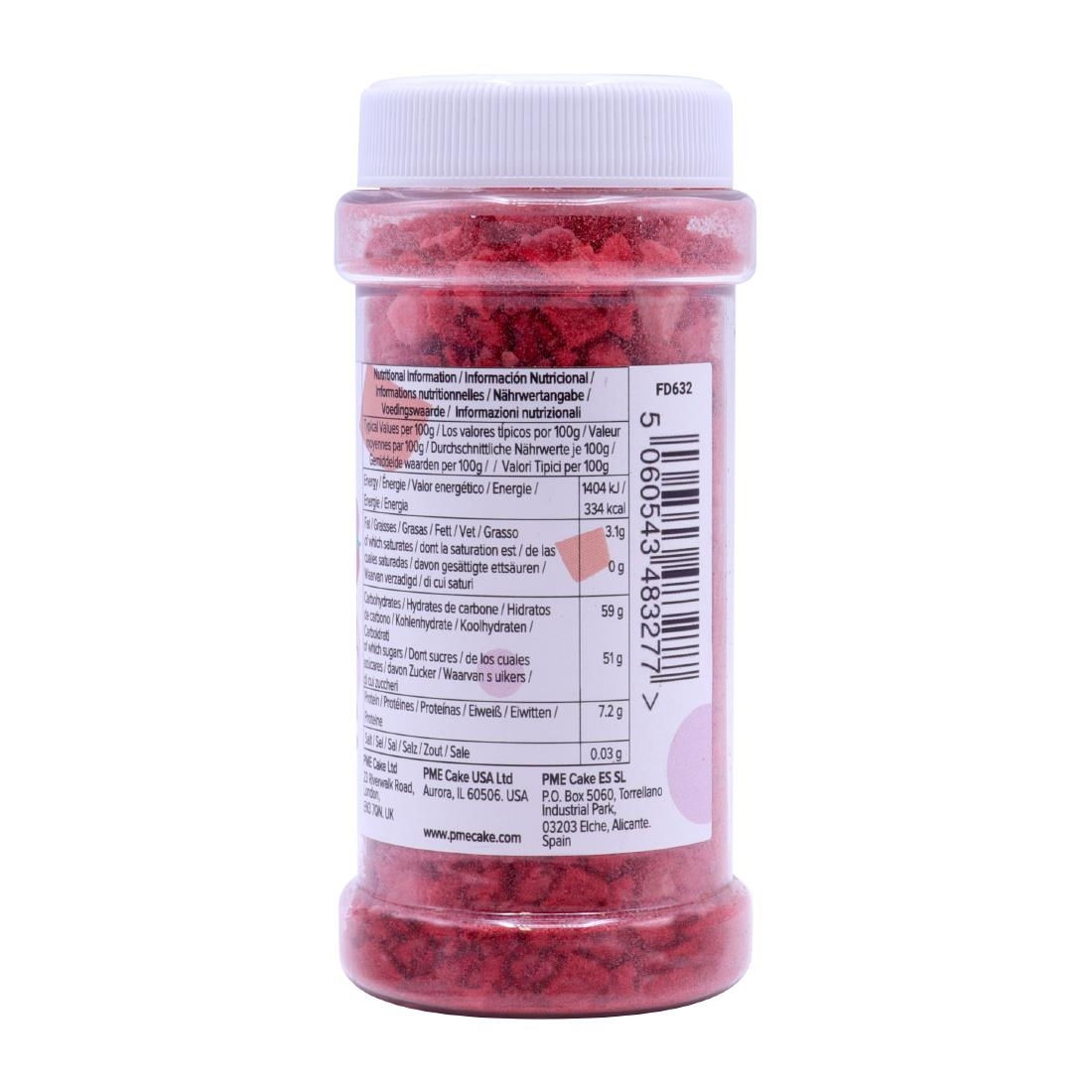 Add a fruity punch to your bakes and desserts with these mouth-watering strawberry pieces from PME. Containing no added sugar or preservatives, the raspberries are freeze-dried to preserve their nutrients, taste and colour. As well as desserts, these freeze-dried strawberries make an excellent cocktail garnish for alcoholic or non-alcoholic drinks. They also are a great addition to morning porridges, oats or smoothies and yoghurts.