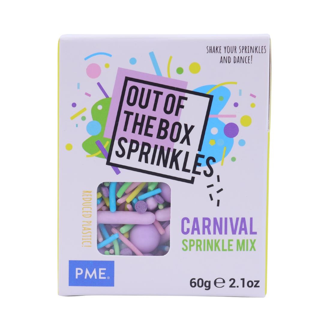 Elevate your cakes and sweet creations with Out of the Box sprinkle mixes by PME. Crafted by the PME UK design team in London, each mix includes a themed blend of sprinkle shapes and colours. Out of the Box sprinkles are free from AZO colours and Titanium Dioxide and come packaged in a convenient, reduced plastic, pourable, and resealable box.