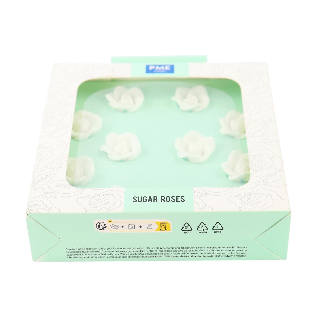 Elevate your baked creations with PME’s delicately handcrafted 25mm white sugar roses. These pack of ten pre-made roses not only save you a significant amount of time and effort over making them by hand, but they also taste great too. Intricately patterned and delicately shaped, the roses can be coloured with lustre sprays, powder colours and airbrush colours to create stunning effects. They come supplied in a beautifully packaged, decorative box.