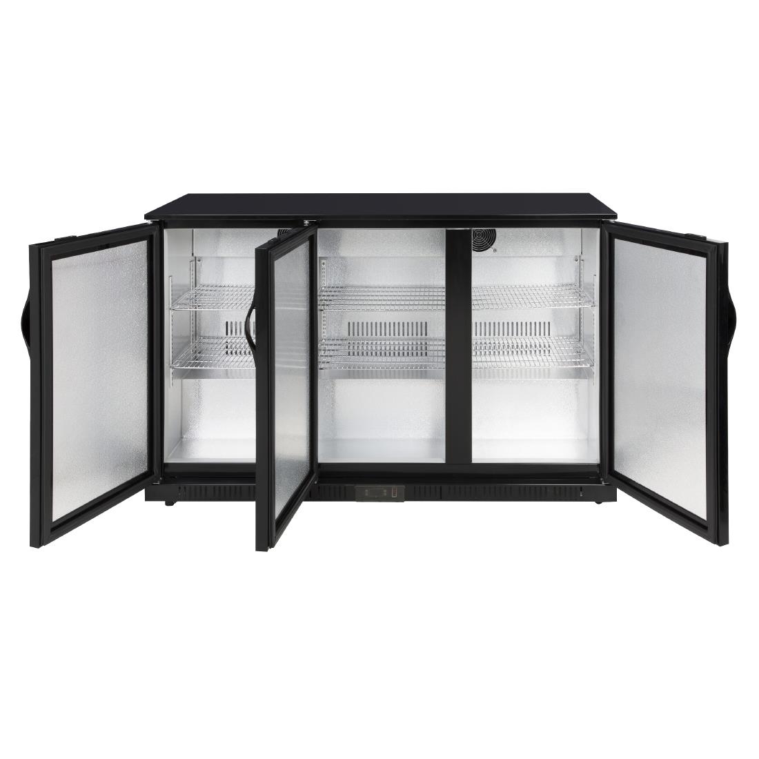 Expand your chilled storage capacity with the Polar triple door back bar cooler. With its stylish black design and solid doors, the fridge doesn’t just look great – it’s an energy-saving option for keeping your most accessed drinks and ingredients cool whilst reducing running costs too.Cooling is highly effective as powerful fans circulate air around the interior – ensuring the contents are kept at the perfect serving temperature, even when the doors are being opened regularly as part of a busy service. Operation is easy too, as simple digital controls allow real-time temperature adjustment and monitoring, even when the door is closed.Whether it’s installed in a hotel, bar, pub or club, the Polar G-Series back bar cooler is a great choice for reliable, high capacity storage.Polar G-Series bar display refrigeration is designed for everyday professional use in demanding environments. With hard-wearing components and strong commercial construction, choose G-Series if you expect to be accessing the unit frequently.