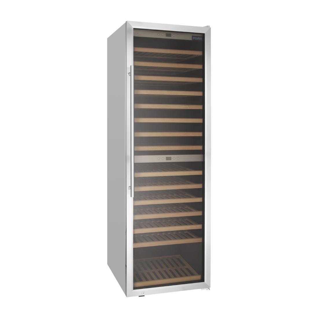Keep your wines perfectly chilled and ready to serve with the reliable Polar G-Series dual zone wine fridge. With space for up to 180 bottles of wine over 15 shelves, there’s plenty of capacity, whilst the dual zone functionality allows you to store at two different temperatures, so you can offer a wide variety of wine within one single unit – no need for separate coolers here.The fridge is perfect for all wine types – whether that’s white, rosé or even sparkling wines, so you can always have a great selection on your wine menu. And as the bottom compartment can also heat, you can be sure that reds are kept at the perfect serving temperature too. Once service is over, the fridge can also be locked to keep the contents securely stored overnight. A fantastic quality wine fridge ideal for any bar, club or pub.Polar G-Series bar display refrigeration is designed for everyday professional use in demanding environments. With hard-wearing components and strong commercial construction, choose G-Series if you expect to be accessing the unit frequently. Polar G-Series reliably keeps temperature in conditions up to 38°C.