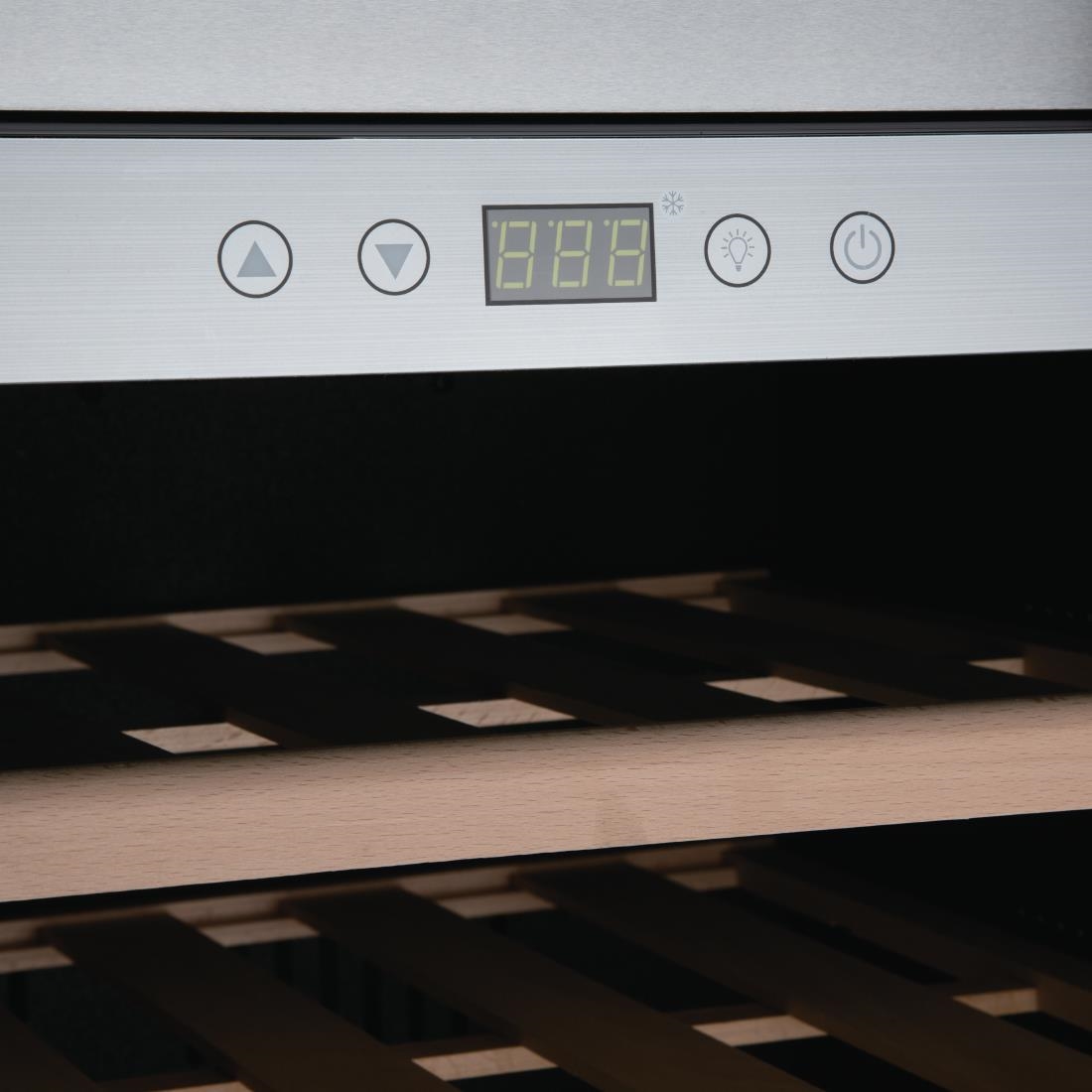 Compact and convenient, the Polar G-Series undercounter wine fridge is a great choice for keeping wines reliably chilled and close to hand.Designed to combine efficiency, performance and capacity, the Polar offers plenty of space for its size – up to 51 wine bottles can be stored across the five sturdy shelves. Cooling is both powerful and effective, as a fan focuses cooling throughout the interior, ensuring temperatures are maintained even when the door is being opened regularly – so you can be confident every bottle is chilled to perfection.The stylish stainless steel exterior and energy-saving LED lighting helps to maximise the appeal of the contents, whilst also making the fridge easier to clean at the end of a busy service. And as the fridge is lockable, it’s simple to keep the contents securely stored. A great wine fridge for pubs, bars, clubs and hotels. Polar G-Series bar display refrigeration is designed for everyday professional use in demanding environments. With hard-wearing components and strong commercial construction, choose G-Series if you expect to be accessing the unit frequently. Polar G-Series reliably keeps temperature in conditions up to 38°C.
