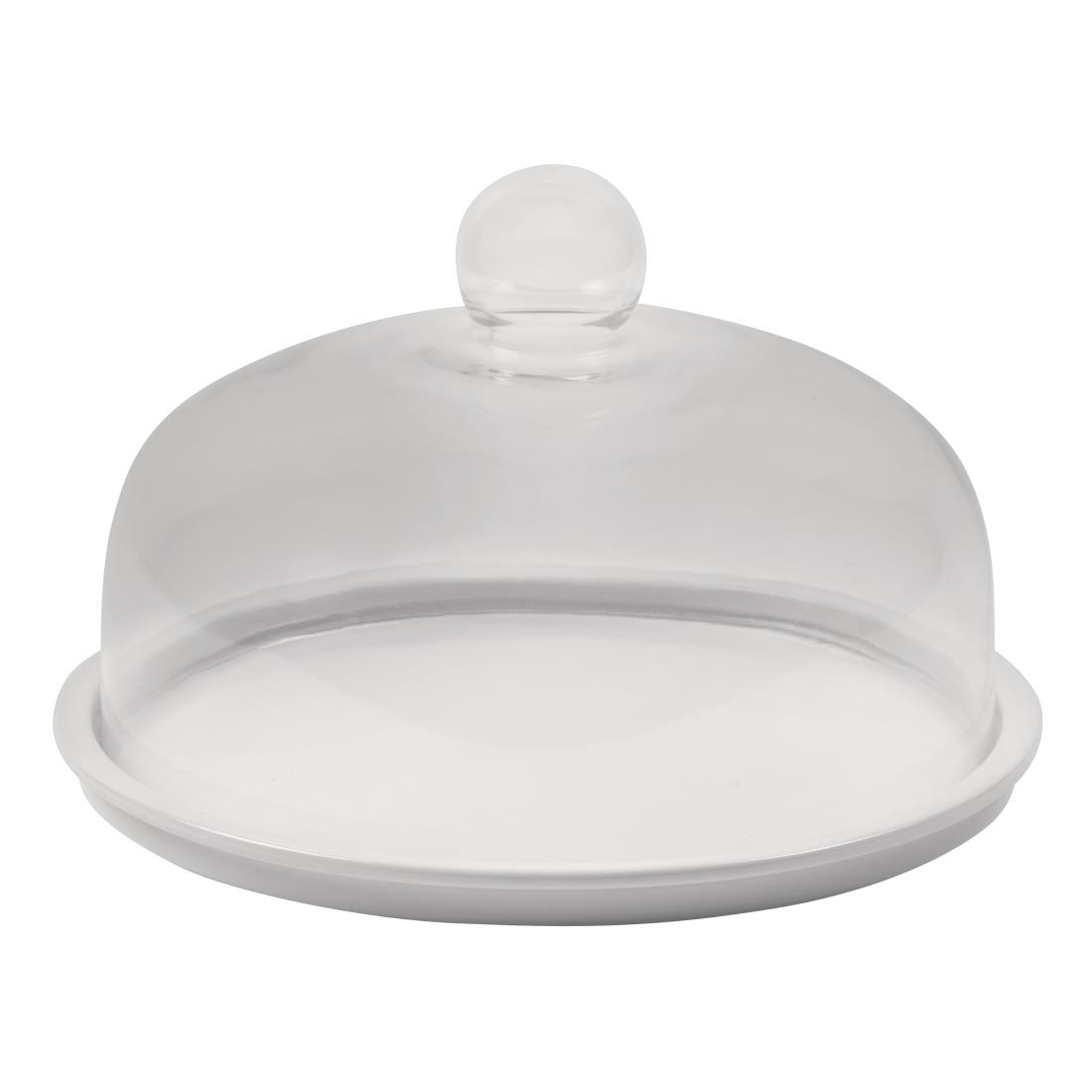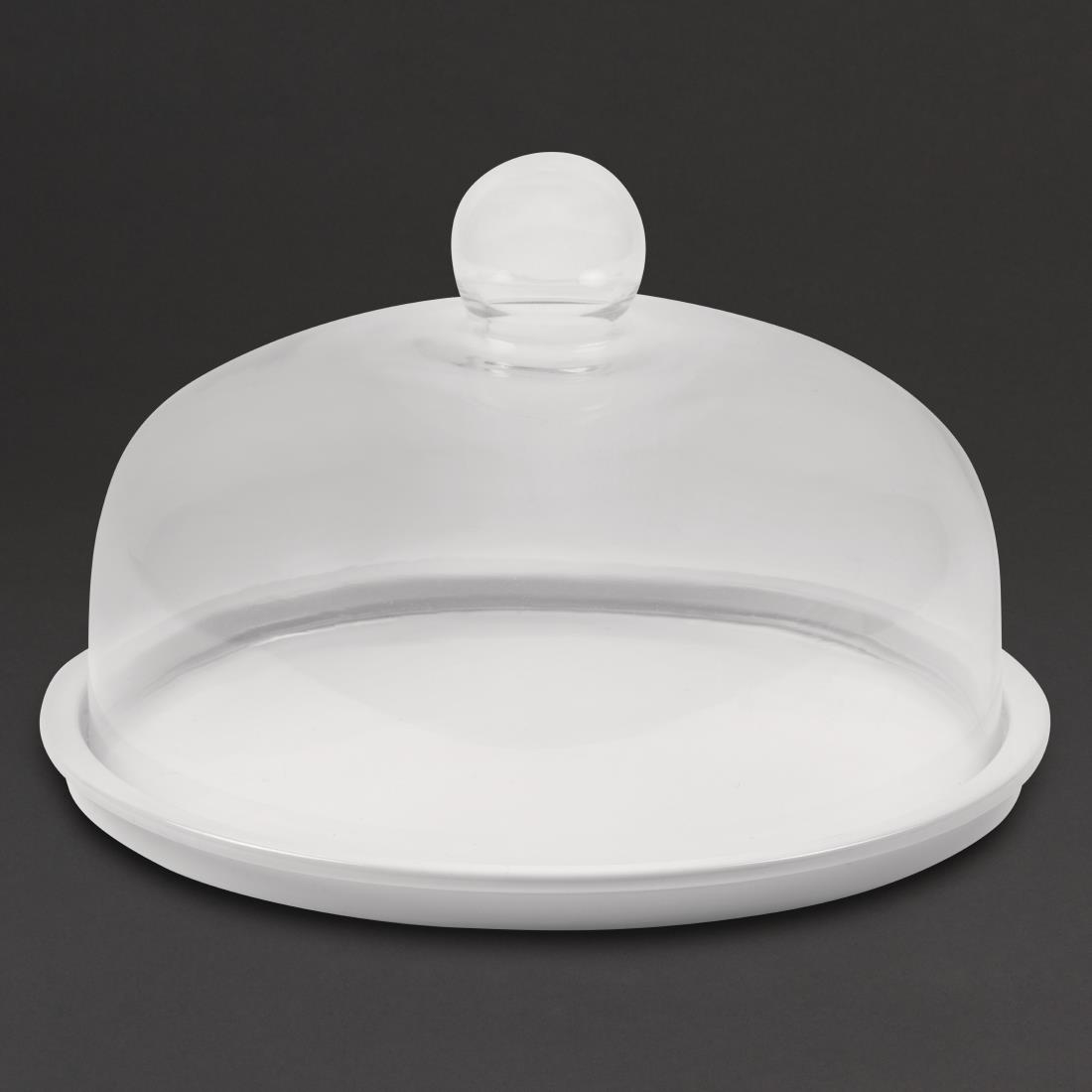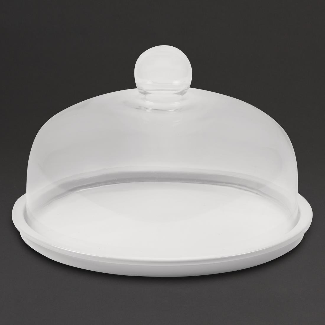 This elegant porcelain cake stand is brilliant white and offers an easy and stylish way to present cakes and desserts. The base is scratch resistant, and heavy enough not to move whilst slicing cake. The hard wearing plate is safe to use in a commercial dishwasher. A glass dome available separately (CL492).