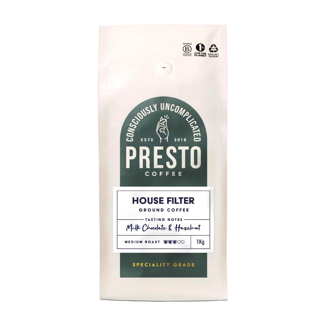 Presto’s House Filter Ground Coffee is a sweet and balanced light roast, featuring flavour notes of milk chocolate and hazelnut. This blend is made from single-origin Arabica beans sourced from high-altitude farms in Brazil.