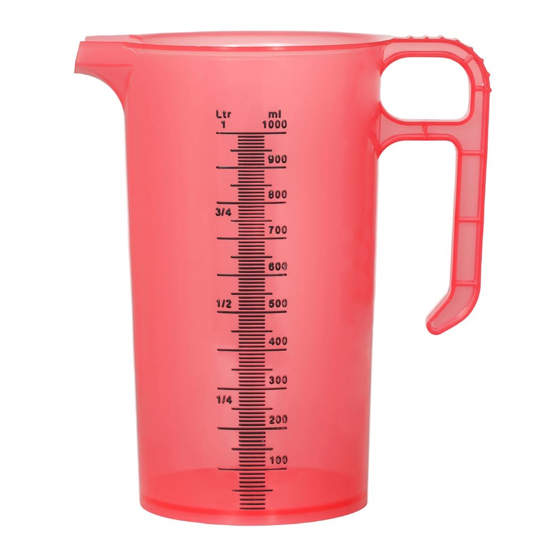 Ensure consistent and accurate measurements with the 1Ltr measuring jug from Pro-Measures. With its ergonomic handle and drip-free spout, it’s easy to grab and pours with less mess and less fuss. On the side, the jug has accurate measurements in litres and millilitres, so you’ll always know exactly how much fluid is inside. As the measurements are hot stamped, they will permanently remain visible – even after many months of everyday professional use. Additionally, the red colour makes it the perfect addition to your colour-coded system.