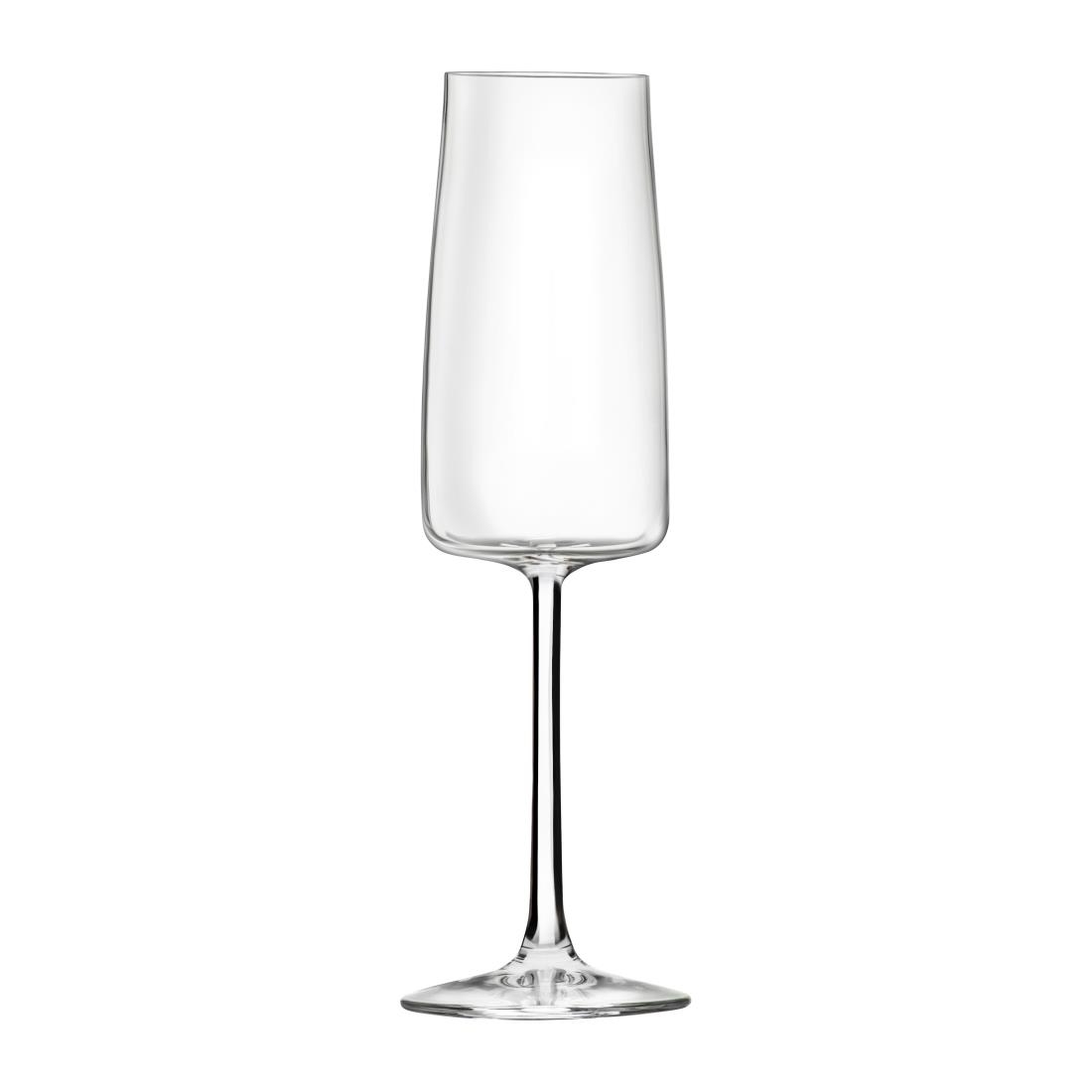 RCR Cristalleria’s Essential glassware is designed for modern and minimalist table décor. This Essential 297ml flute boasts a flat bowl that elegantly cradles the wine within a captivating trapezoidal shape.