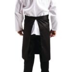Hardwearing polycotton regular black bistro waist apron with pocket and matching sewn in ties. This is the ideal simple apron for any waiter or waitress.