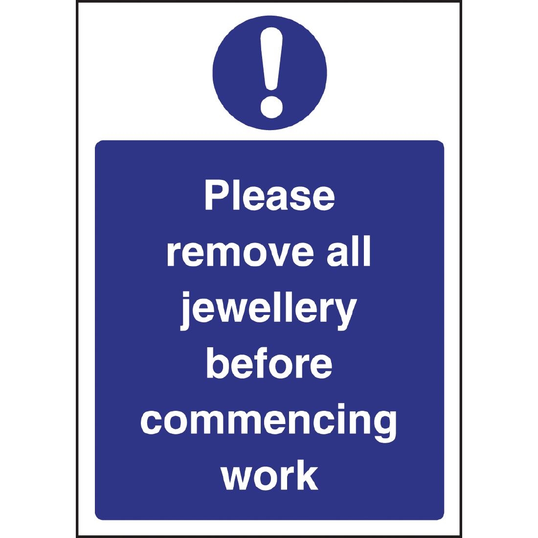 This safety sign warns your staff to remove all items of jewellery before commencing work to avoid contamination issues and minimise risk of damage to equipment. Displaying clear reminders of any potential hazards in kitchens and food preparation areas is essential to reduce the risk of food contamination and raise awareness of optimum food safety practices.