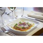 Designed to offer a modern feel to any table setting or buffet display, this white, Club plate from Revol features two gently rounded edges for a contemporary look, with two flat edges that allow the plates to sit snugly together. The curved edges on this bowl make it ideal for dishes served with sauce.