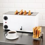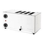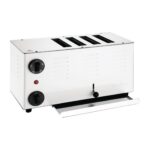 The highly robust and practical Rowlett four slice toaster from Rowlett’s long-established toaster range comes with a variety of features, including a stainless steel top and durable metal body, ideal for use in pubs, restaurants, schools, B&Bs and care homes. It’s fitted with a slot selector switch, allowing versatility and optimum energy efficiency, as only the required slots heat up. The toaster also switches off at the end of each cycle, signalled by a ‘toast ready’ ringer, but keeps the toast warm in the machine until taken out. Suitable for thicker products such as hand-cut bread or crumpets.