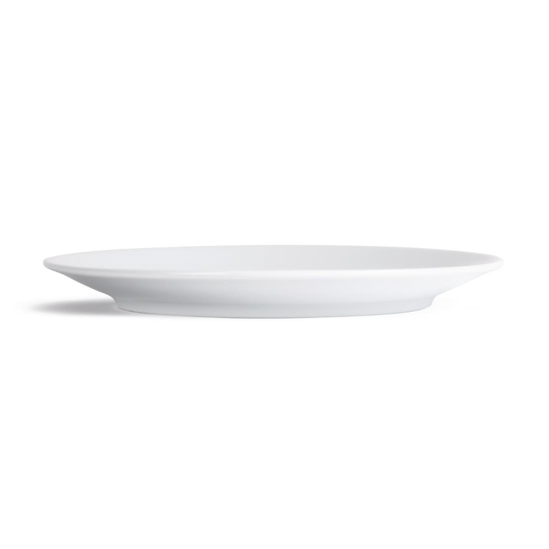 Make sure your delicious meals are always centre of attention by serving them on these classic coupe plates from Royal Porcelain. The brilliant white finish provides a blank canvas that lets you get creative when plating up, while the rimless design ensures your food will be the star of the show.Fired at high temperatures, the vitrified porcelain is stronger and more durable to cope with repeated use in the busiest dining areas. It’s dishwasher-safe to save time and effort when it comes to cleaning, and you’re also guaranteed the quickest possible return to service. In the kitchen, it’s microwave and oven-safe too, to help with reheating tasks.