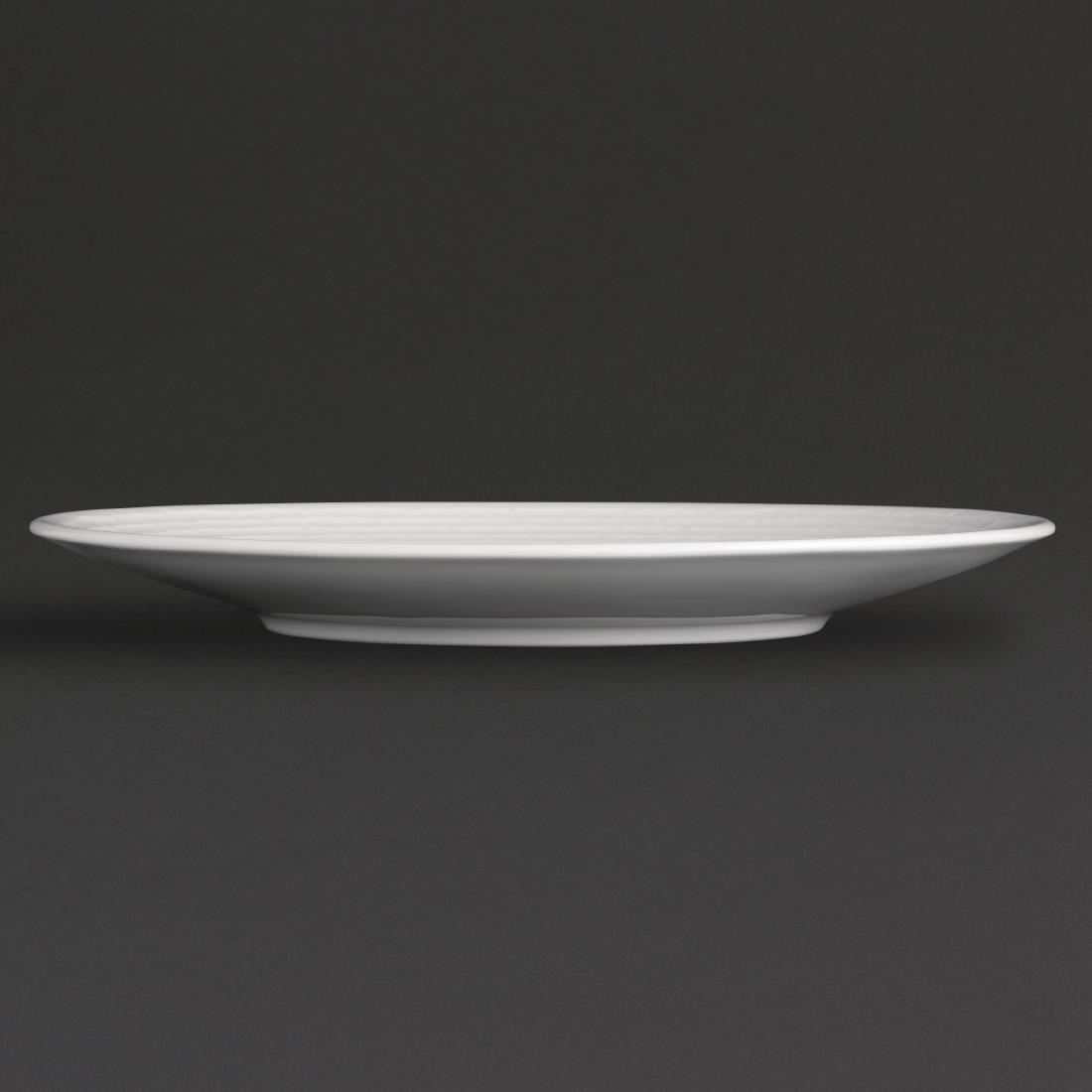 Ideal for serving your starter dishes, this stunning plate from Royal Porcelain is perfect for a traditional feel at the table. The surface of the plate is completely flat making it great for modern food presentation. The small lip around the edge prevents any food on the plate from easily falling off. After use, it is safe to wash these pizza plates in your commercial dishwasher.