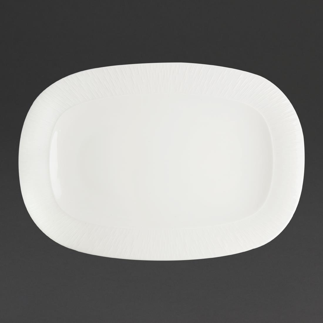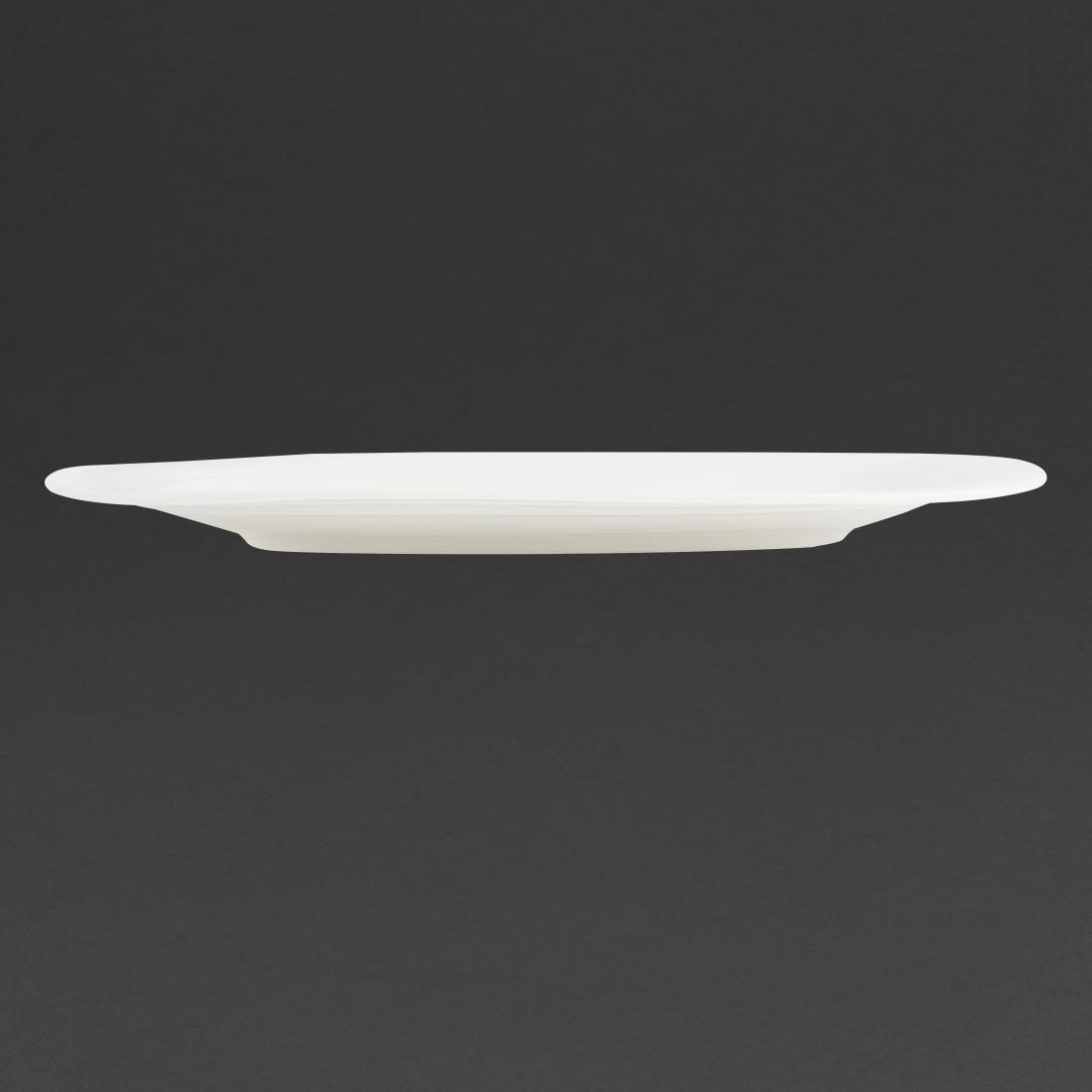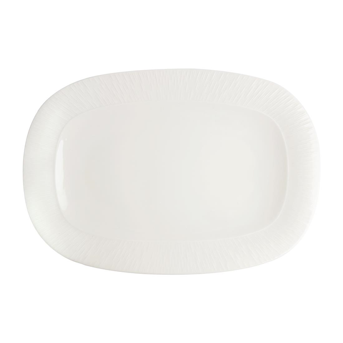 The Royal Porcelain maxadura range incorporates strength and style into elegant designs. The layered pattern on the edges of this oval platter makes large food presentations look attractive. It is manufactured with aluminium oxide to ensure that it is chemically resistant, ideal for use in busy restaurants and other catering establishments. Rolled edges complete the glazing for a fresh looking platter with every use.