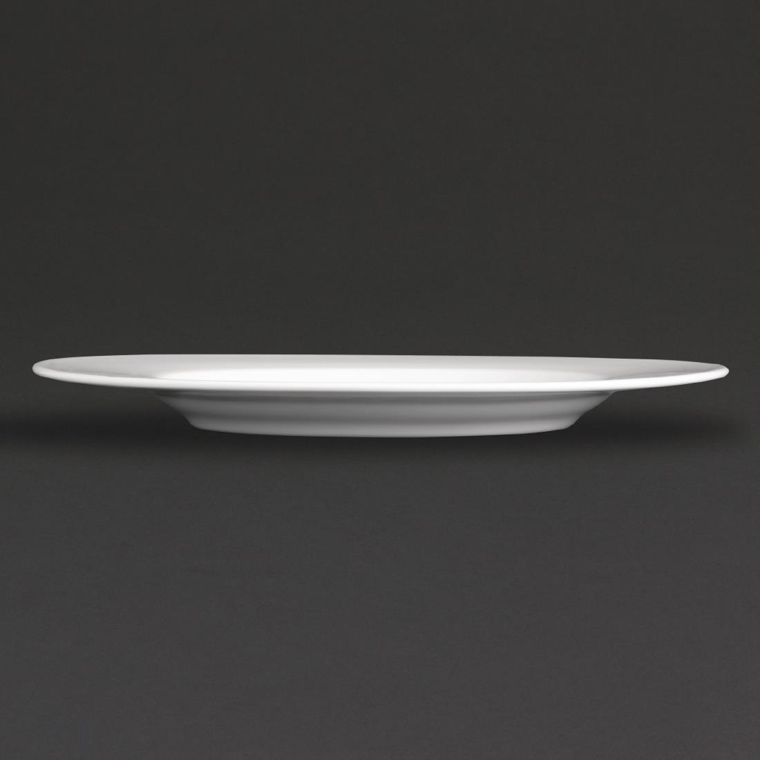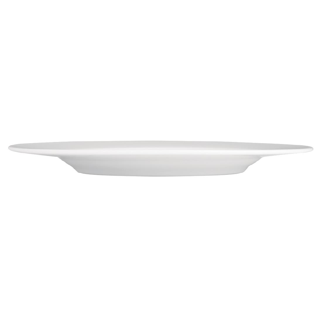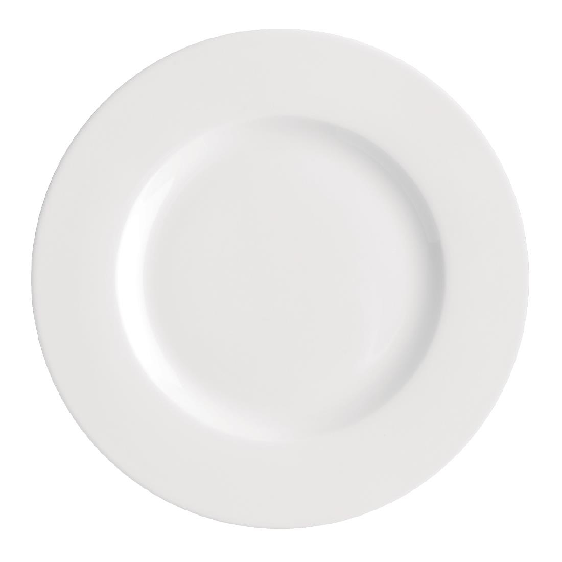 Perfect for modern food presentation, these stunning plates from Royal Porcelain offer a traditional feel at the table. The surface of the plate is completely flat and the wide rim makes the plate great for serving dishes using creative plating techniques. The foot of the plates are polished so that they don’ t scratch each other when stacked.